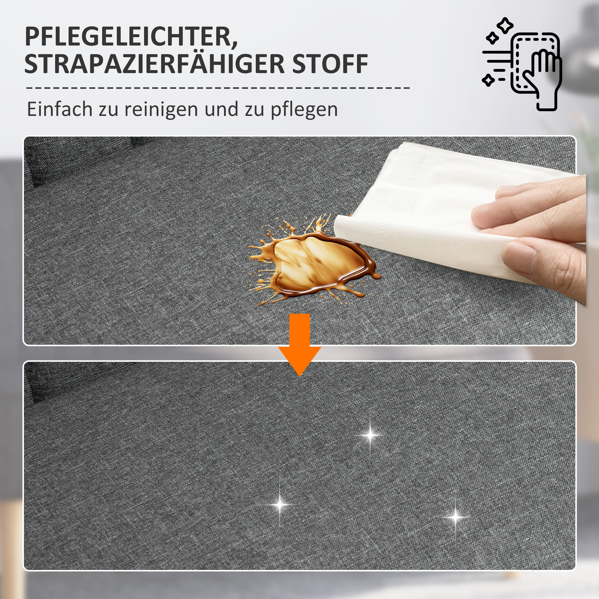 Tauchen Sie ein in den Komfort dieses eleganten, Retro-anmutenden Sofas von HOMCOM - der ultimative Rückzugsort für Filmabende oder entspannte Drinks mit Freunden, Dieses charaktervolle, kompakte Sofa verwandelt jeden Raum in eine stilvolle Lounge, Die großzügige und bequeme Sitzfläche lädt zum Verweilen ein, während der robuste Holzrahmen für Stabilität und Langlebigkeit sorgt, Der pflegeleichte Stoffbezug und die weiche Polsterung lassen Sie angenehm einsinken und den Alltag weich ausklingen,