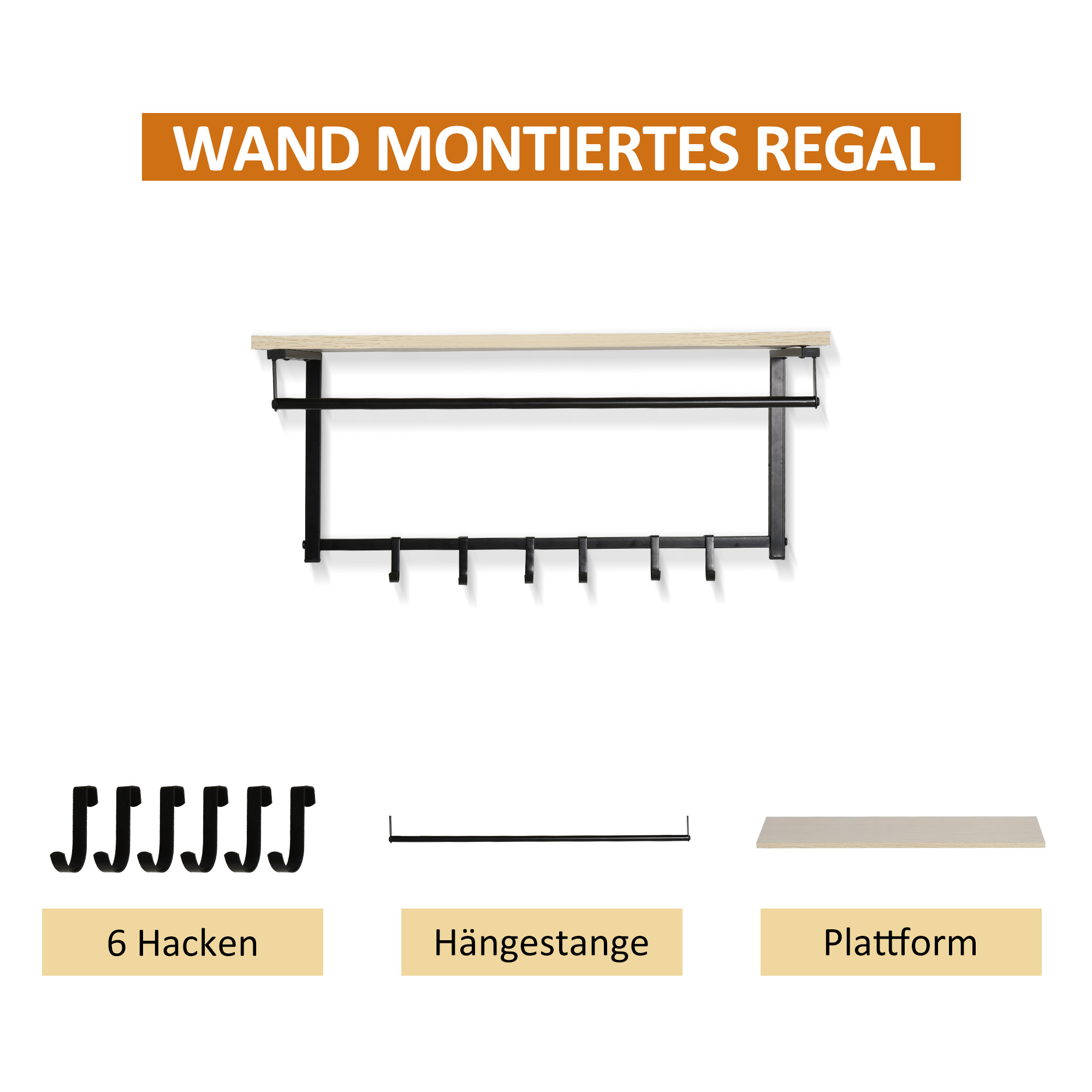 - 6-Haken-Regal & Plattform: Das wandmontierte Regal mit 6 Haken und einer Stange ermöglicht es Ihnen, Ihre Mäntel, Jacken, Schals oder andere Accessoires aufzuhängen, Eine obere Plattform zum Ausstellen kleiner Dekore,