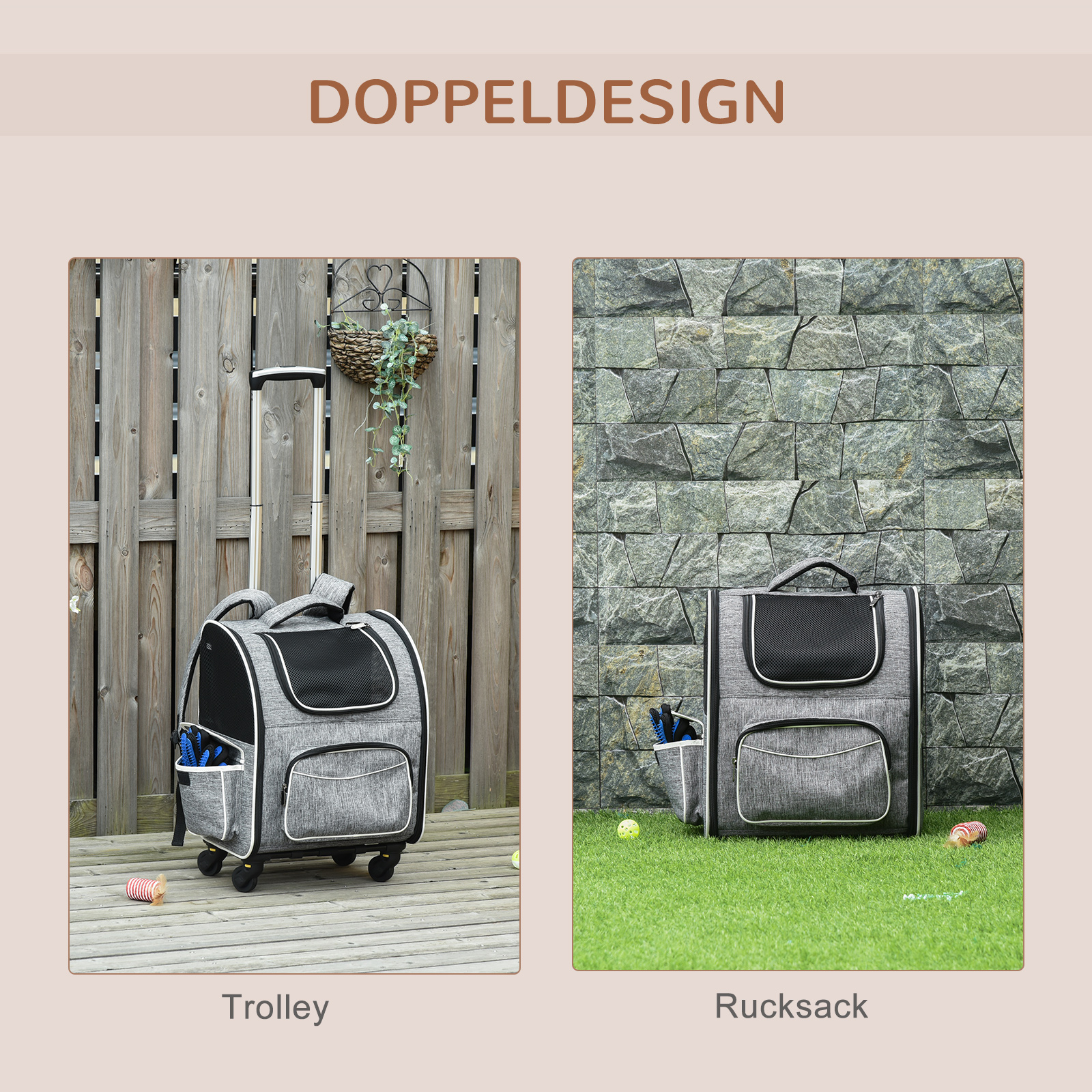 Ob für einen Besucht zum Tierarzt, auf Reisen oder für einen Ausflug - diese Transporttasche von Pawhut ist der ideale Reisebegleiter sie und ihren Hund, Diese Transporttasche ist sowohl ein Haustier-Trolley als auch ein Haustierrucksack, 3 Taschen an der Außenseite bieten viel Platz für Zubehör und Futter, Dank einer Sicherheitsleine ist ihr Hund während des Transports zusätzlich gesichert, Mit dieser Tragetasche kannst du deinen Hund sicher und geschützt von Ort zu Ort tragen,
