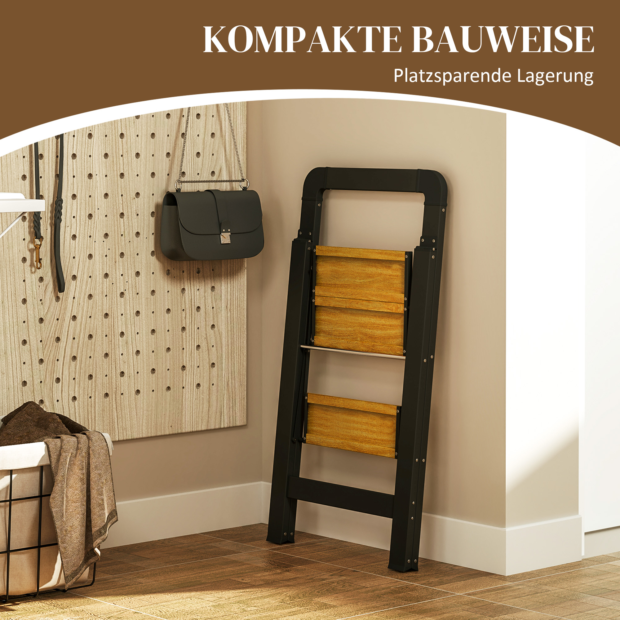 2-stufige Trittleiter, Metall, faltbar, rutschfeste Plattform, Schwarz
