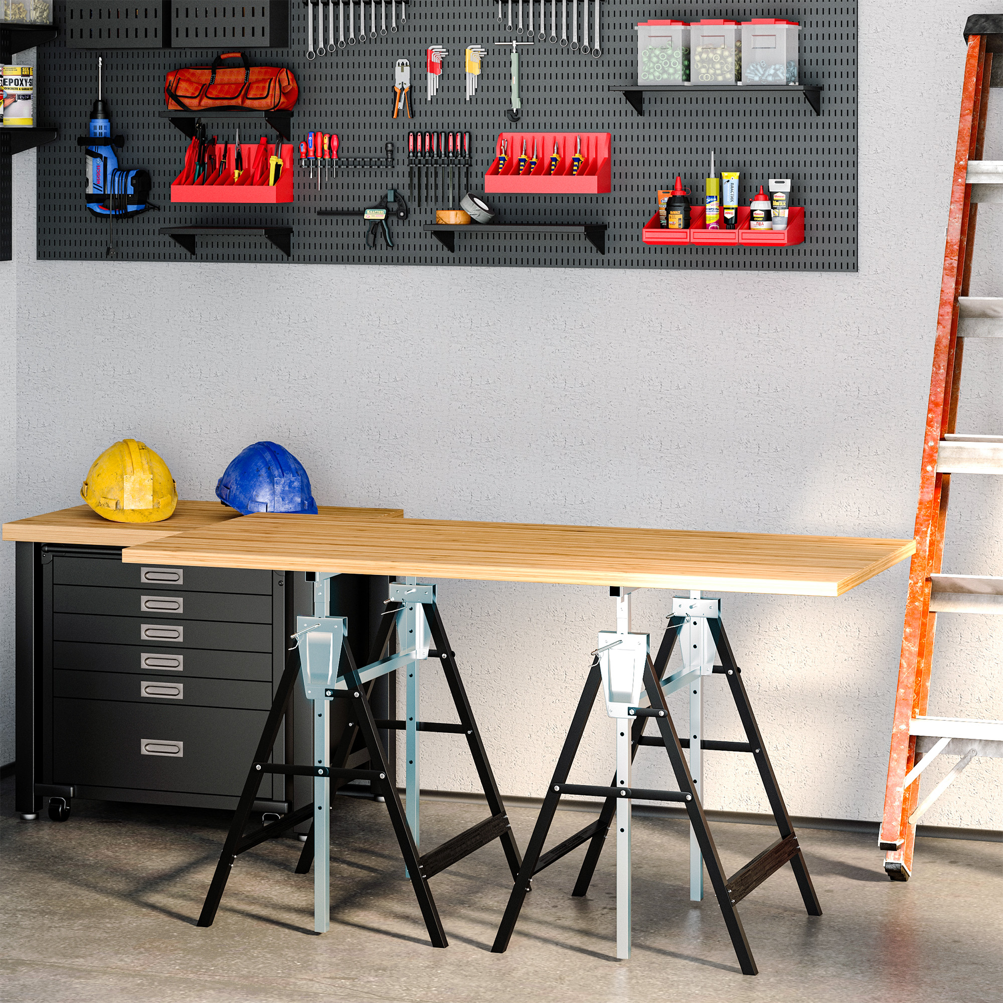 - Klappbar: Für den Transport oder die platzsparende Lagerung können Sie Ihre Stahlböcke einfach zusammenklappen,
