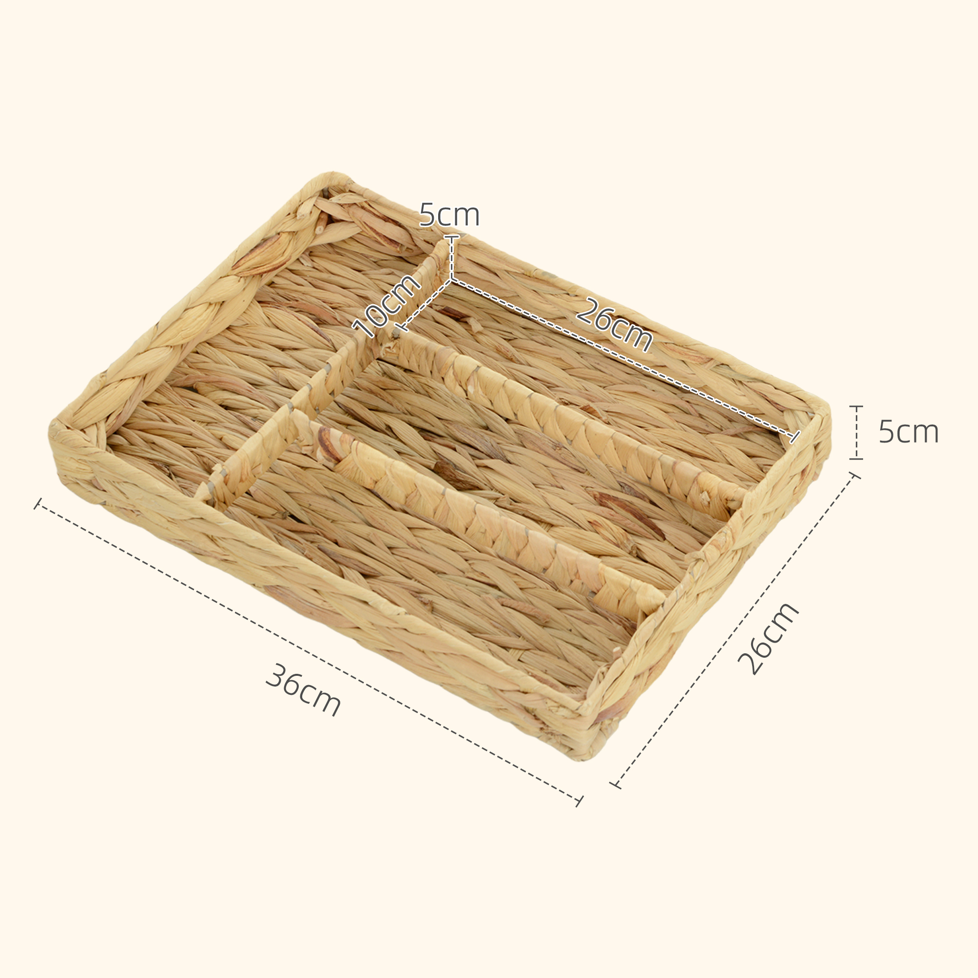 Bringen Sie mit dem 2er-Set handgewebter HOMCOM Aufbewahrungskörbe Ordnung in Ihr Zuhause, Diese vielseitigen Vier-Fach-Körbe aus natürlicher Wasserhyazinthe stellen sicher, dass von Büromaterialien bis hin zu Besteck alles seinen festen Platz findet, Durch ihren Look verleihen sie zudem jedem Raum eine rustikale Eleganz und der robuste Metallrahmen hält Ihre Gegenstände übersichtlich und griffbereit, wo auch immer Sie die Körbe platzieren,
