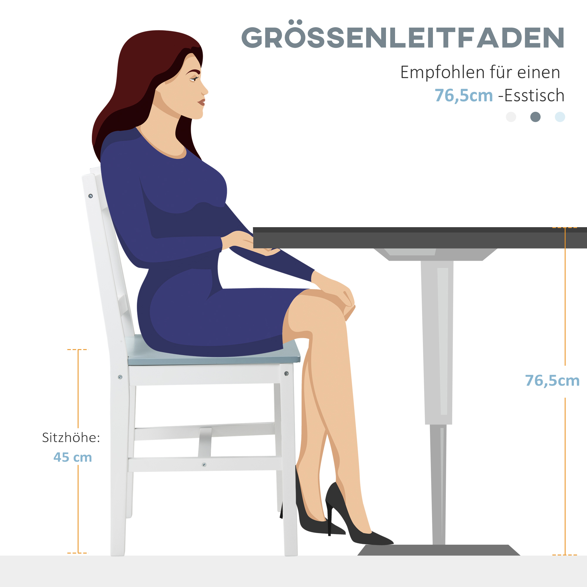 • Gesamtabmessungen des Essstuhls: 46,5T x 41B x 85,5H cm, Sitzgröße: 41,5T x 41B x 45H cm, Tragfähigkeit: 120 kg, Montage erforderlich