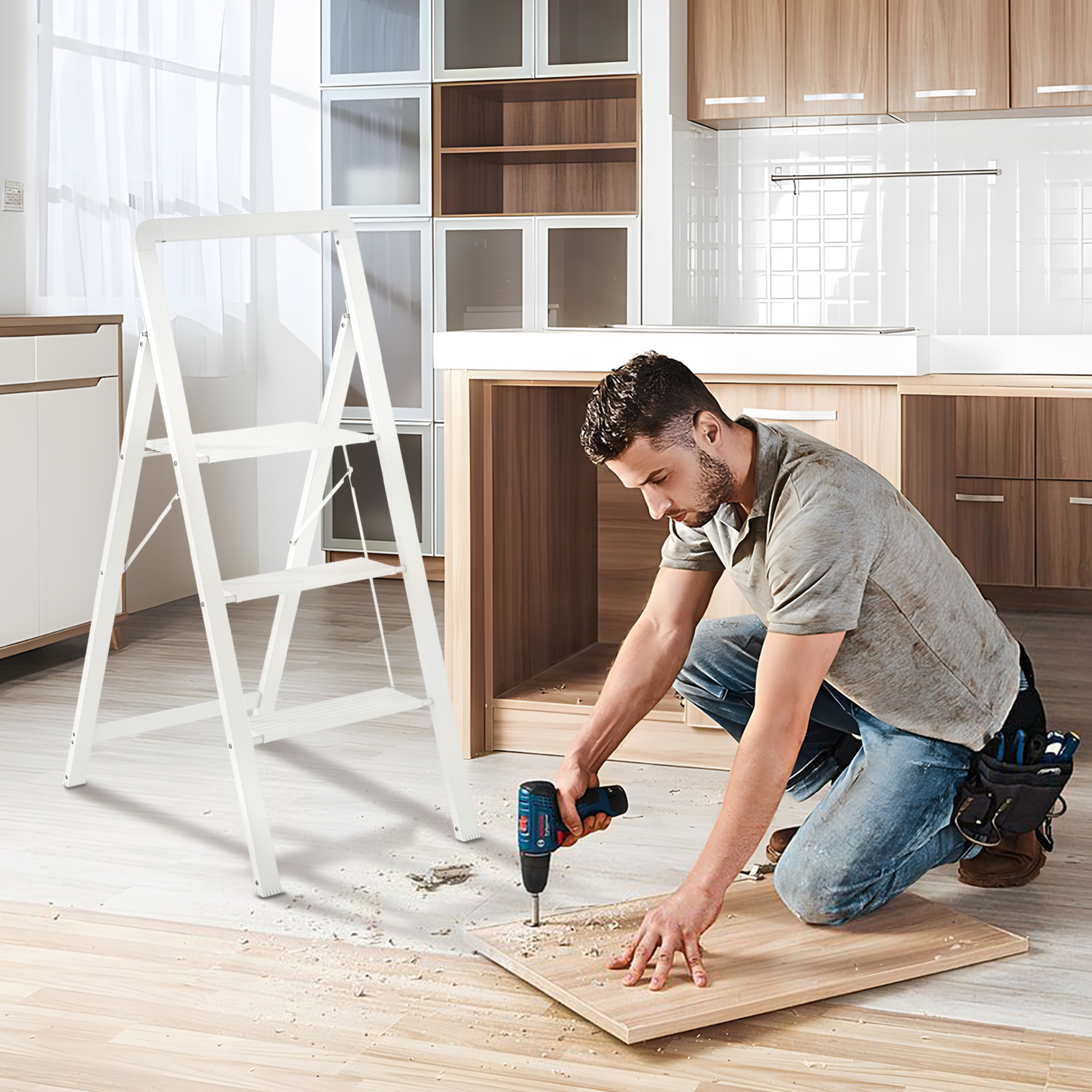 - Leichte Tragbarkeit: Diese kompakte zweistufige Leiter ermöglicht einfaches Erreichen hoher Regale und schwer zugänglicher Bereiche, ideal für Dekoration und Reinigung in Haus und Garten,