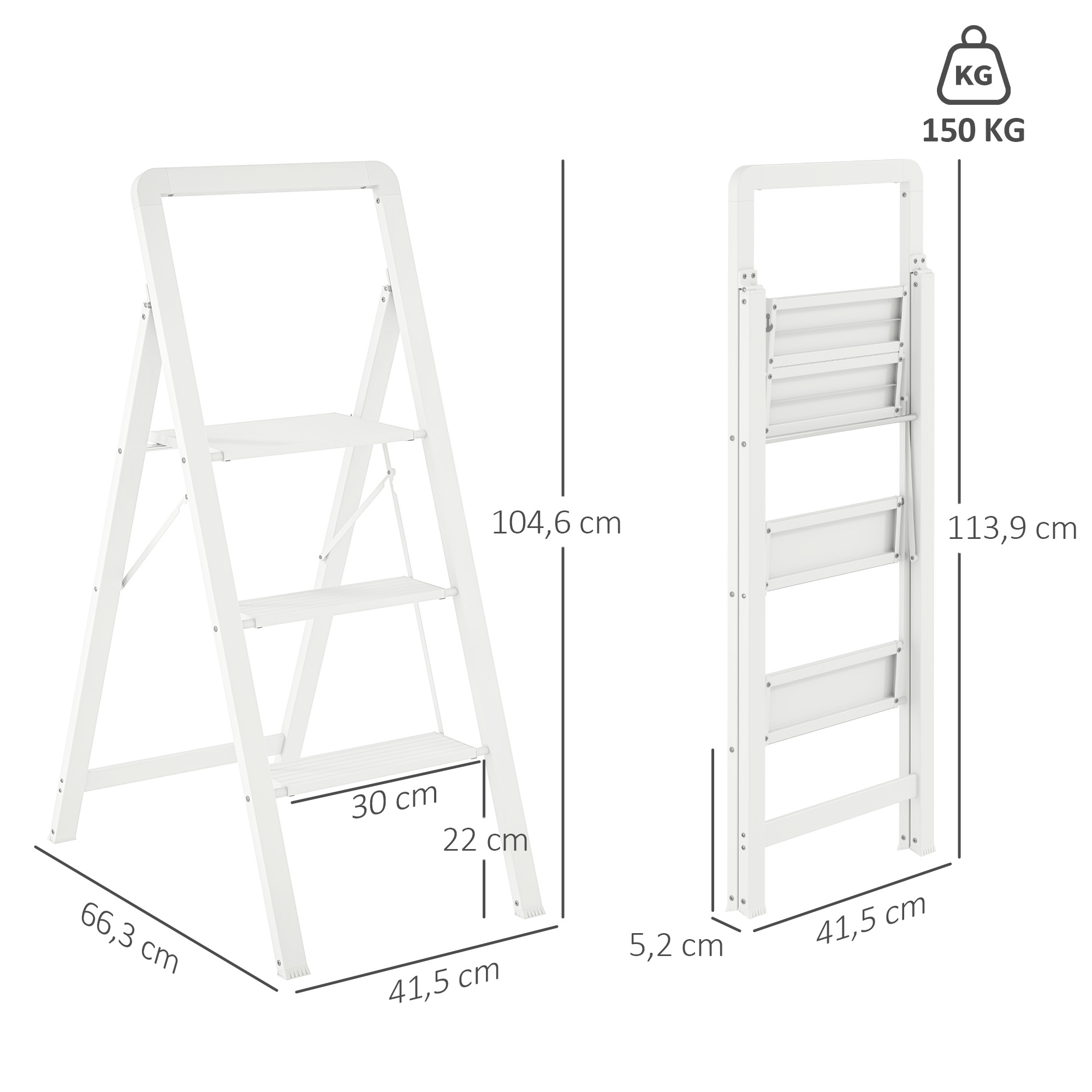 3-stufige Trittleiter, Aluminum faltbar, rutschfeste Plattform, Weiß
