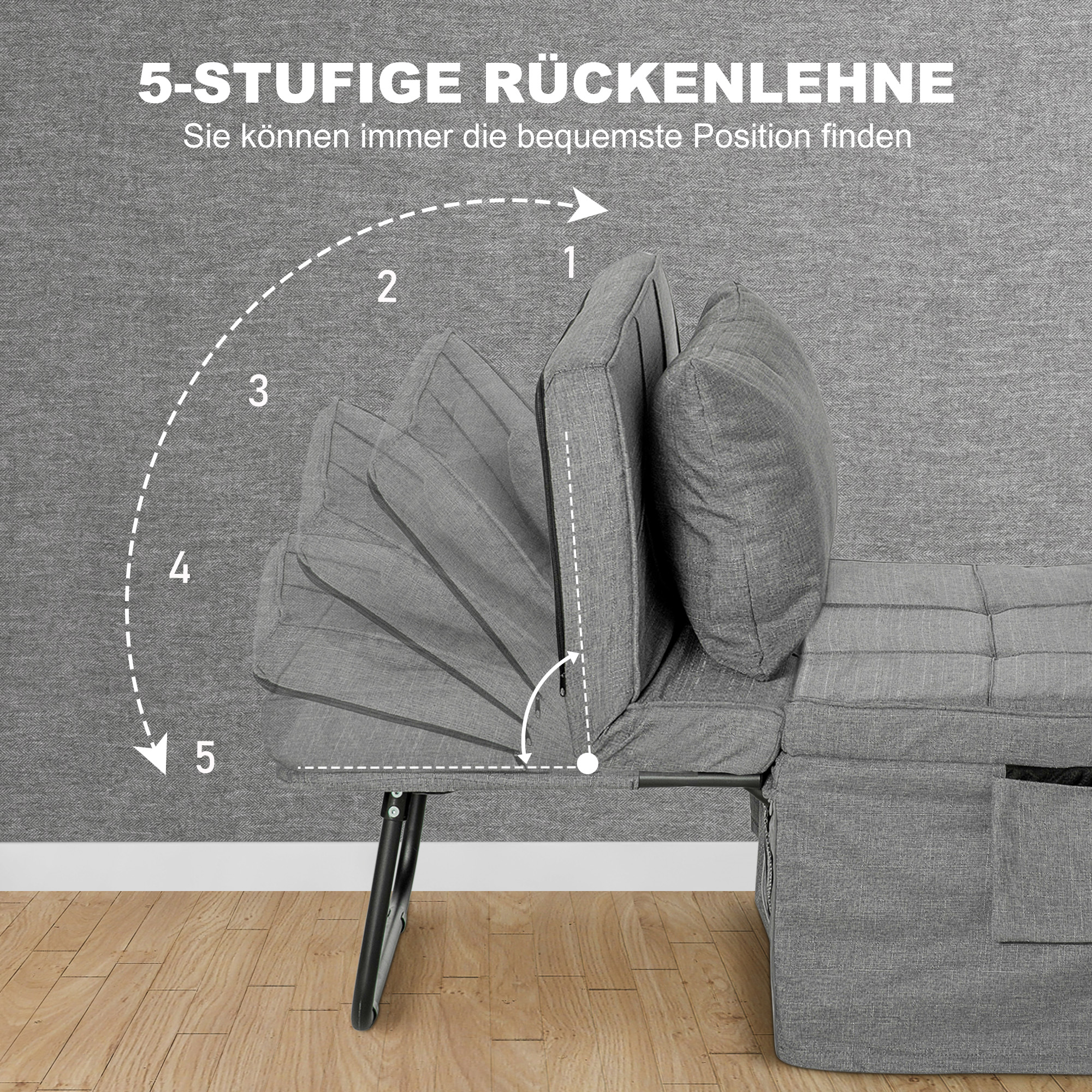- VERSTELLBARE RÜCKENLEHNE: Die Rückenlehne kann in fünf unterschiedlichen Neigungspositionen eingestellt werden, sodass Sie schnell die optimale Sitz- und Liegeposition finden,