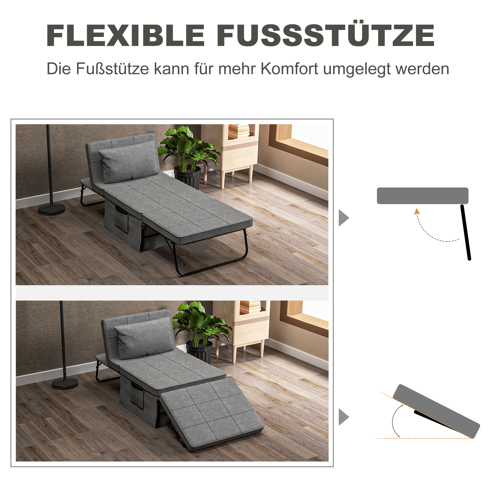 - WANDELBARES DESIGN: Dieses bequeme und praktische Klappbett vereint vier Möbelstücke in einem und kann einfach und schnell in einen Relaxsessel, eine Ottomane, ein Sofa oder Gästebett verwandelt werden,