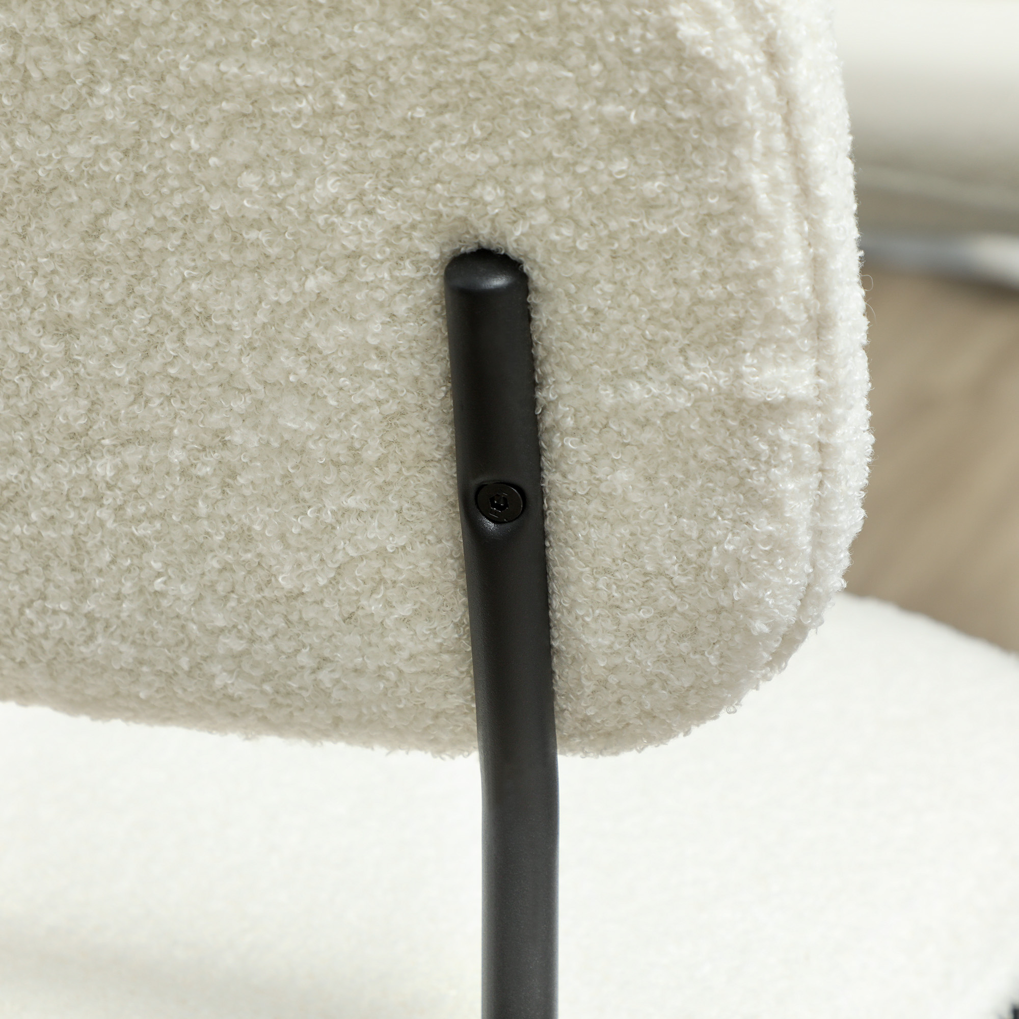 Gestalten Sie Ihren Speisebereich neu mit den Küchenstühlen von HOMCOM, Dieses moderne Ensemble vereint elegante, schwarze Rahmen mit edlem Boucle-Stoff für einen beeindruckenden Auftritt, Die Essstühle bieten mit ihrer niedrigen Rückenlehne und dem armlosen, weich gepolsterten Design optimalen Komfort für lange Dinner, Die robusten Stahlbeine, pulverbeschichtet, garantieren Stabilität und verleihen jedem Raum einen Hauch von Eleganz,