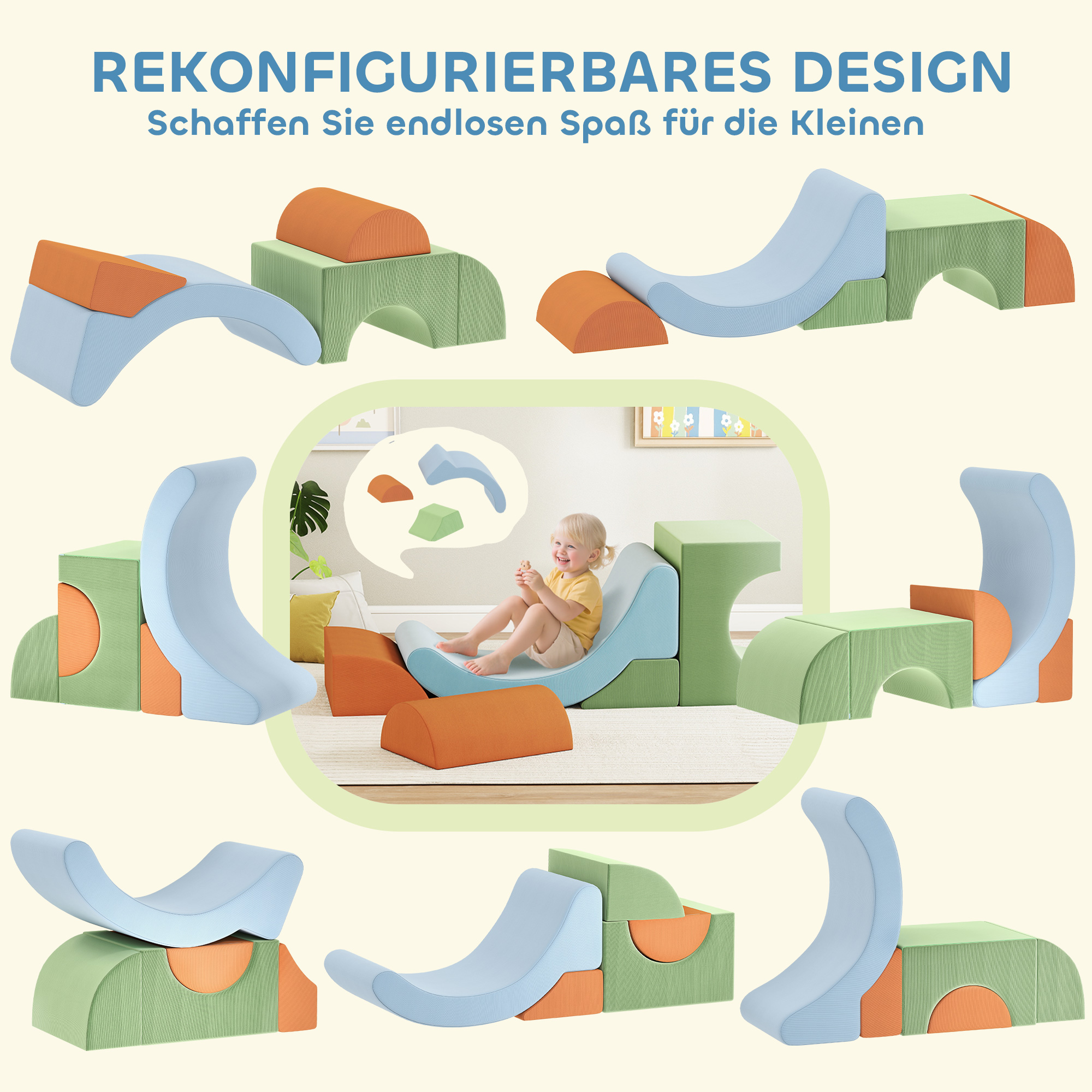 - Charmante Farbakzente: Die angenehmen Grün-, Orange- und Hellblautöne des Softbausteine-Sets fügen sich nahtlos in jede Wohnraumdekoration ein und schaffen eine einladende Atmosphäre für kreatives Spielen