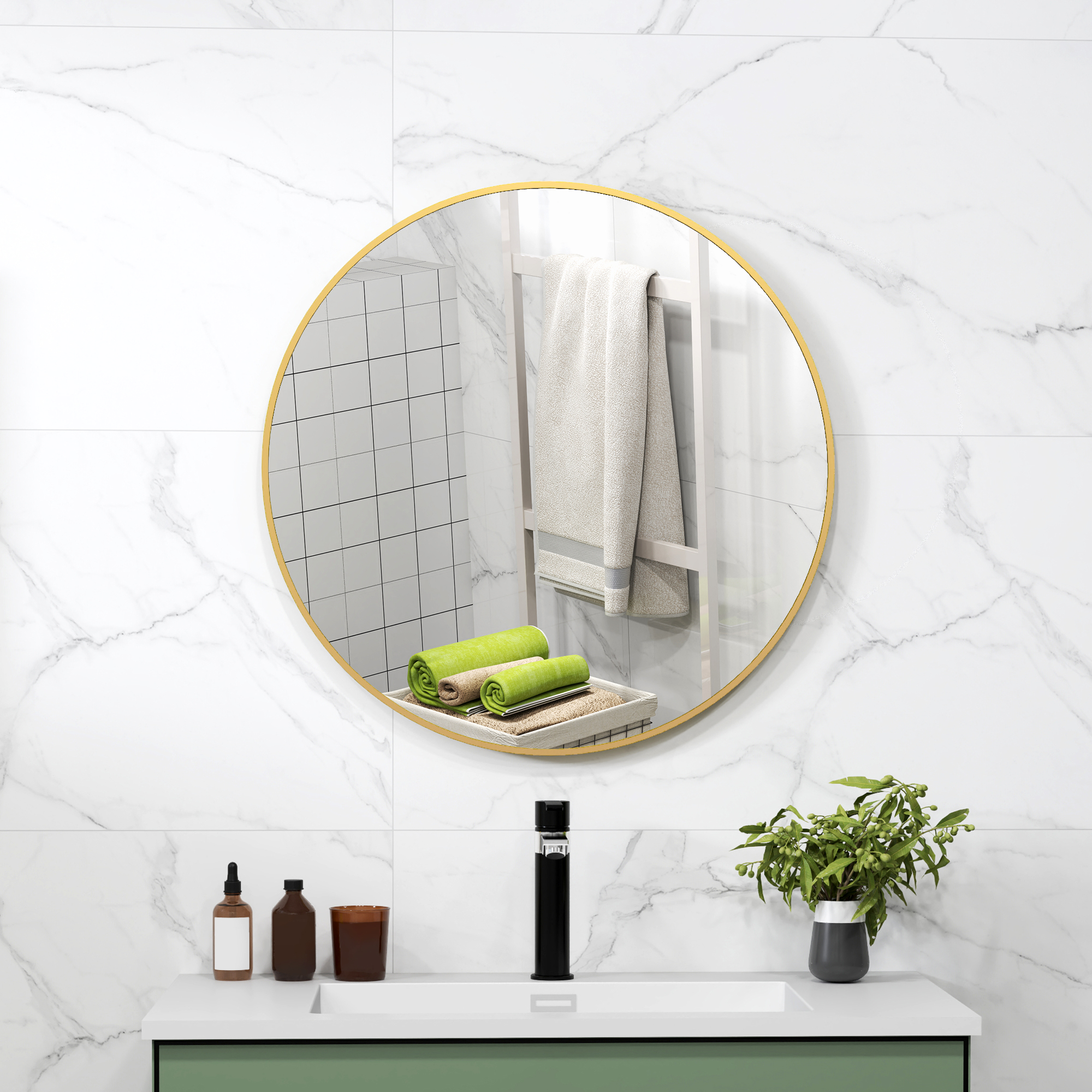 70 x 70 cm runder Badezimmerspiegel, Wandmontage, goldfarbener Rahmen