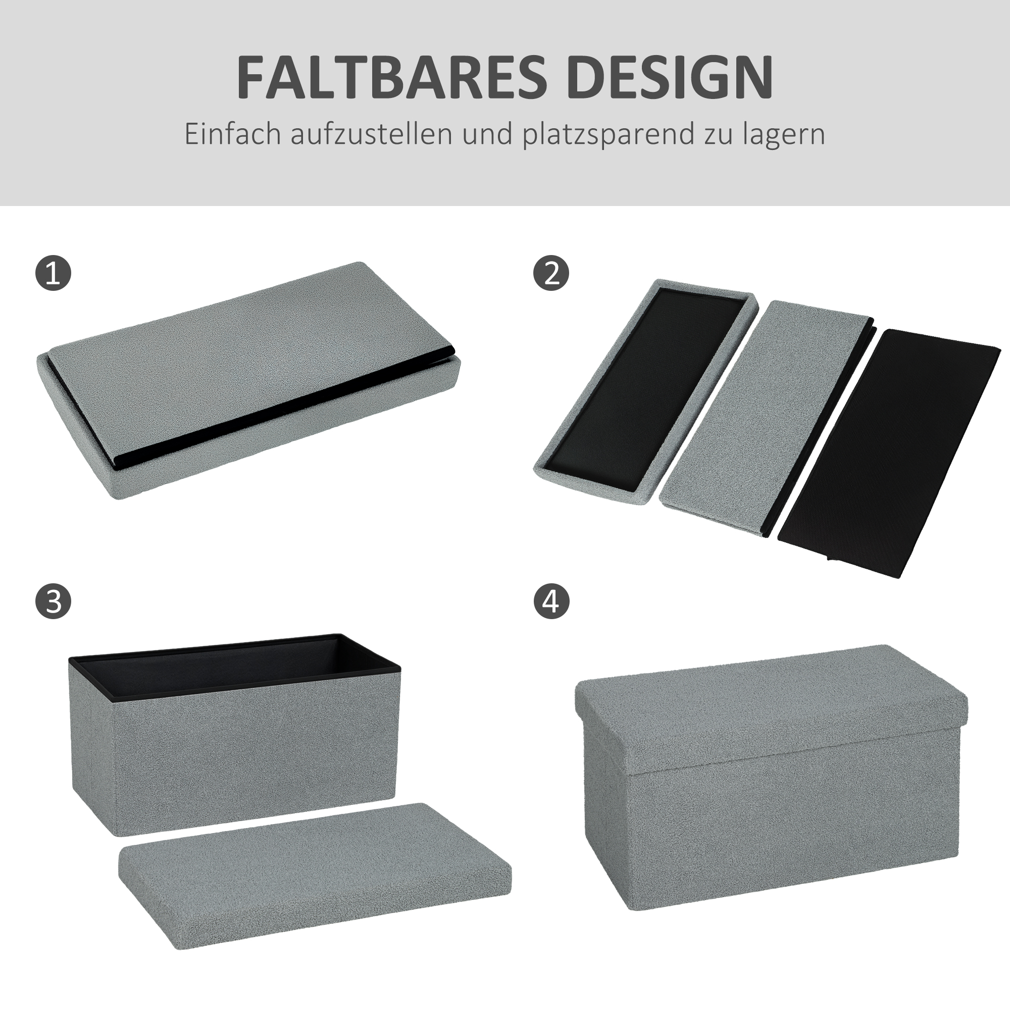 Mit der HOMCOM Sitztruhe mit Stauraum bringen Sie Ordnung in Ihr Zuhause: Diese Truhenbank mit Stauraum ist mit einem verborgenen Stauraum von 84 L ausgestattet, um darin Decken, Kissen und andere Dinge aufzubewahren, Weich gepolstert, wandelt die Truhe mit Deckel sich schnell von einer Sitzbank zu einem eleganten Fußhocker, Das klappbare Design des stilvollen und praktischen Hockers passt in jedes Zimmer und bereichert Ihre Einrichtung,