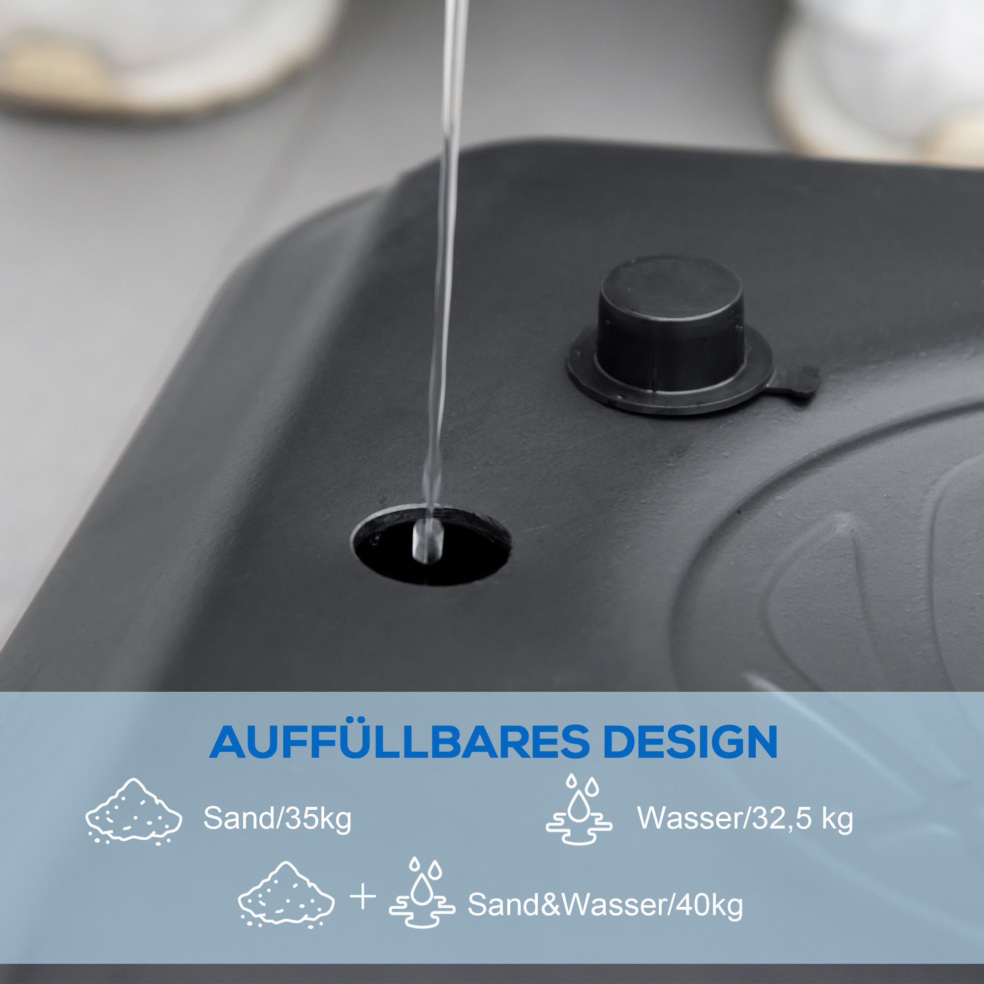 - - Gewicht: 40 kg (Sand), 32,5 kg (Wasser), 35 kg (Sand-Wasser-Mischung)