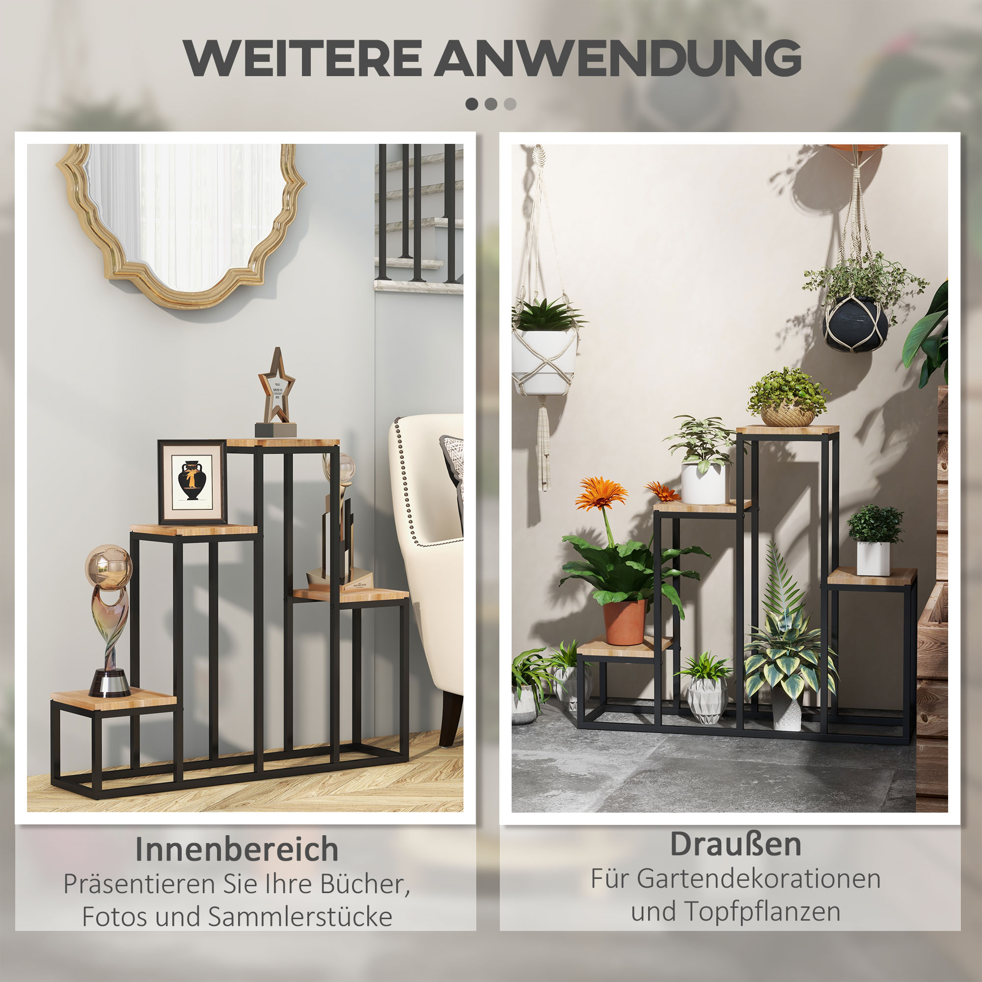 Das Outsunny Blumenregal zieht alle Blicke auf sich und verleiht jedem Raum Glanz, Mit seinen vier Regalböden bietet es stilvolle Präsentationsflächen für Pflanzen, Bücher, Fotos und viel mehr, Die stabile Konstruktion des Blumenständers aus Stahl und Holz gewährleistet eine langjährige Nutzung,