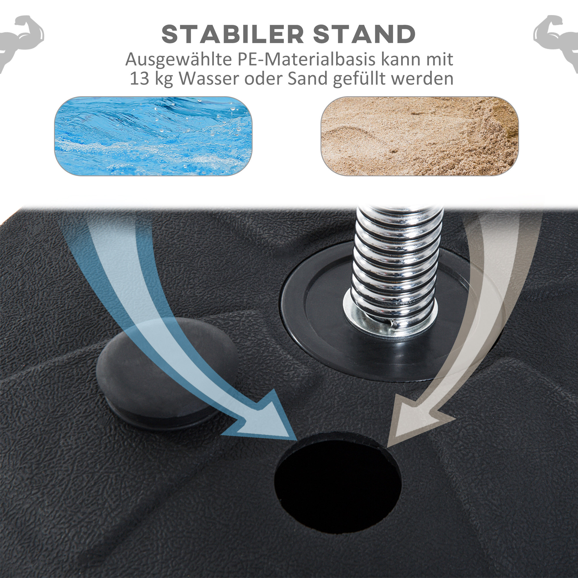 • - Beschwerungsbasis zum Füllen mit Wasser (13 Kg) oder Sand