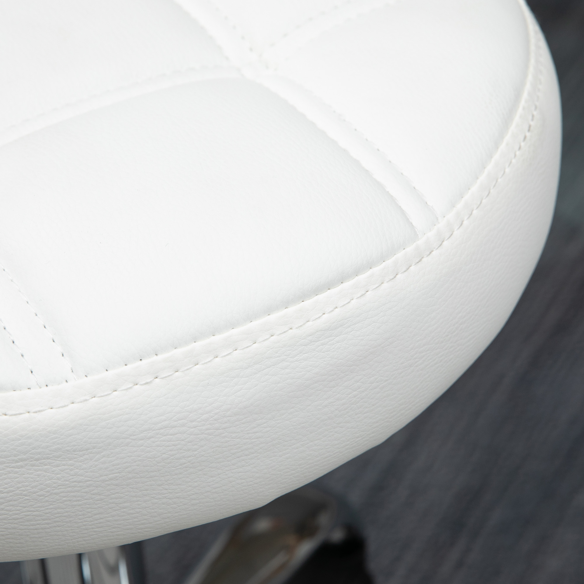 Sind Sie auf der Suche nach einem praktischen, platzsparenden und bequemen Rollhocker? Dieser höhenverstellbare Salonhocker von HOMCOM ist ideal in jeder Hinsicht, Dank seines armlosen, drehbaren Designs genießten Sie uneingeschränkte Bewegungsfreiheit, Wenn nicht gebraucht, lässt er sich einfach unter einem Tisch verbergen, ohne Platz zu beanspruchen, Der voll gepolsterte Sitz, bezogen mit Kunstleder, bietet höchsten Komfort und das elegante Steppmuster verleiht ihm eine ansprechende Optik,
