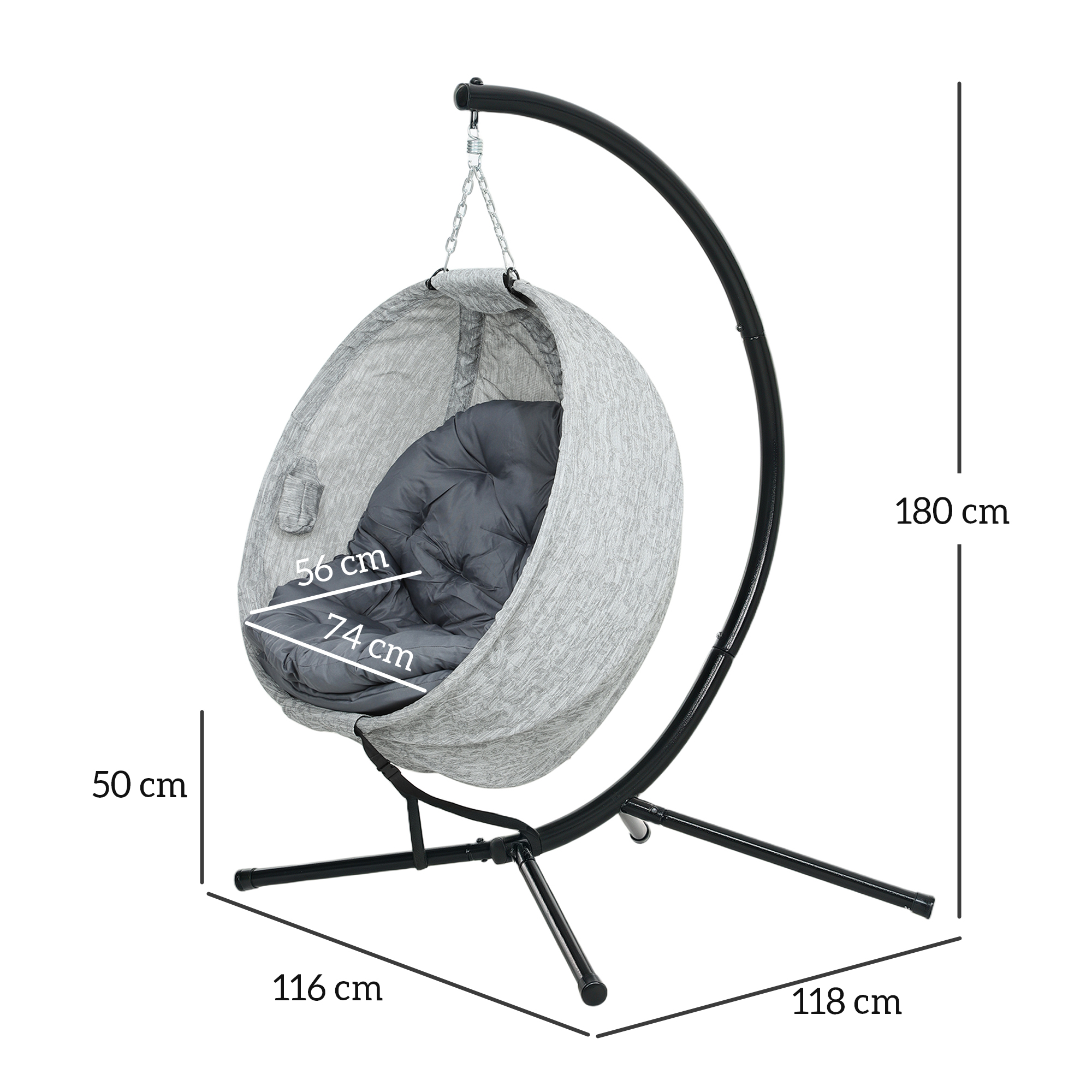 Produktinformationen "Eiförmiger Hängekorb, Hängesessel mit Schaukelfunktion und faltbarem Korb, Gartenstuhl, Becherhalter, Grau"
