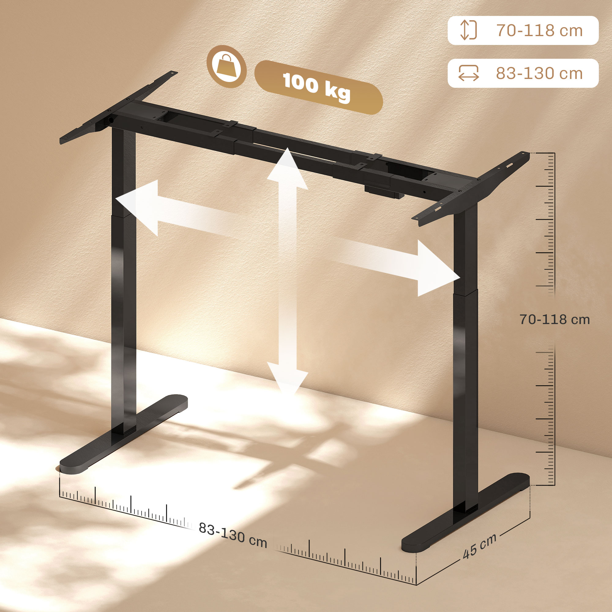 Optimieren Sie Ihren Arbeitsbereich mit diesem höhenverstellbaren Schreibtischgestell! Justieren Sie mühelos von 70 cm bis 118 cm in der Höhe und 83 cm bis 130 cm in der Breite, Dank der kraftvollen Doppelmotoren wechseln Sie die Einstellungen schnell und geräuschlos und profitieren von drei praktischen Speicherfunktionen, Dieses Schreibtischgestell bietet mit Stil und Funktionalität Unterstützung für Ihren Arbeitstag,