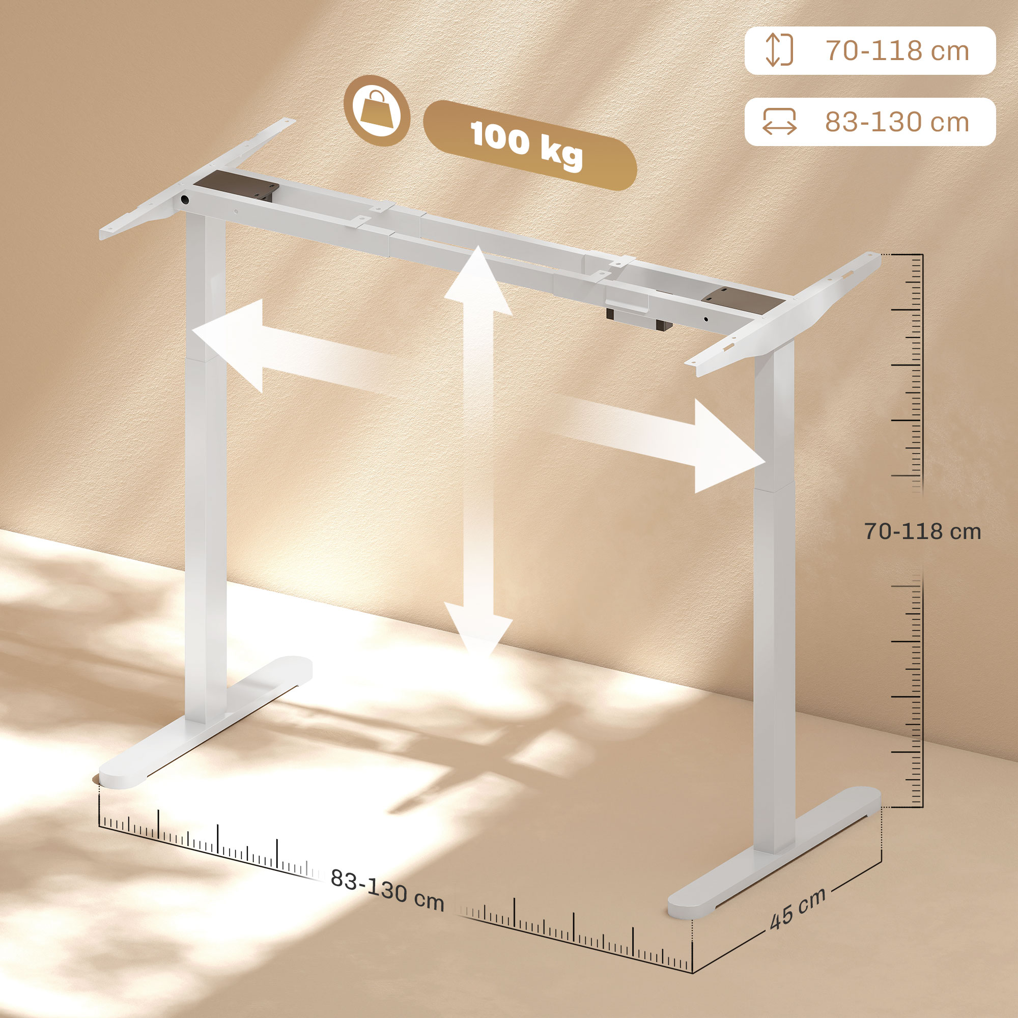 Optimieren Sie Ihren Arbeitsbereich mit diesem höhenverstellbaren Schreibtischgestell! Justieren Sie mühelos von 70 cm bis 118 cm in der Höhe und 83 cm bis 130 cm in der Breite, Dank der kraftvollen Doppelmotoren wechseln Sie die Einstellungen schnell und geräuschlos und profitieren von drei praktischen Speicherfunktionen, Dieses Schreibtischgestell bietet mit Stil und Funktionalität Unterstützung für Ihren Arbeitstag,