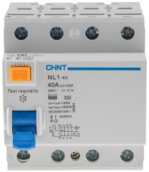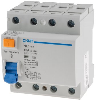Produktinformationen "FI Fehlerstrom-Schutzschalter 30mA, 40A, 4-polig für DIN Trägerschiene"