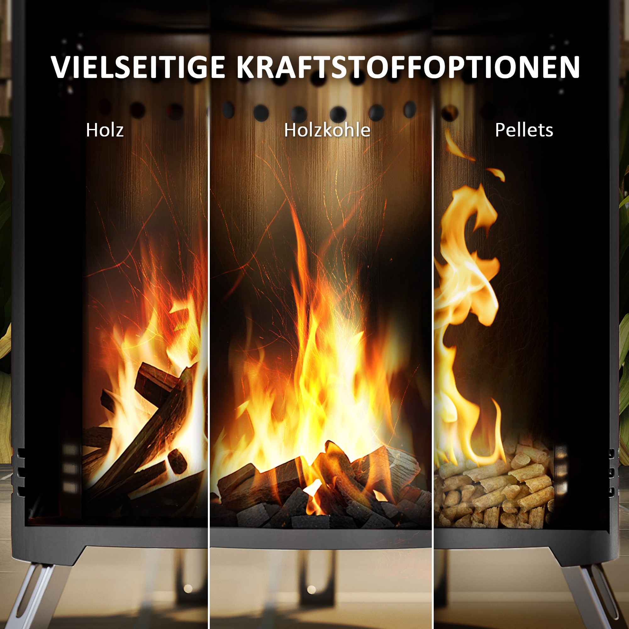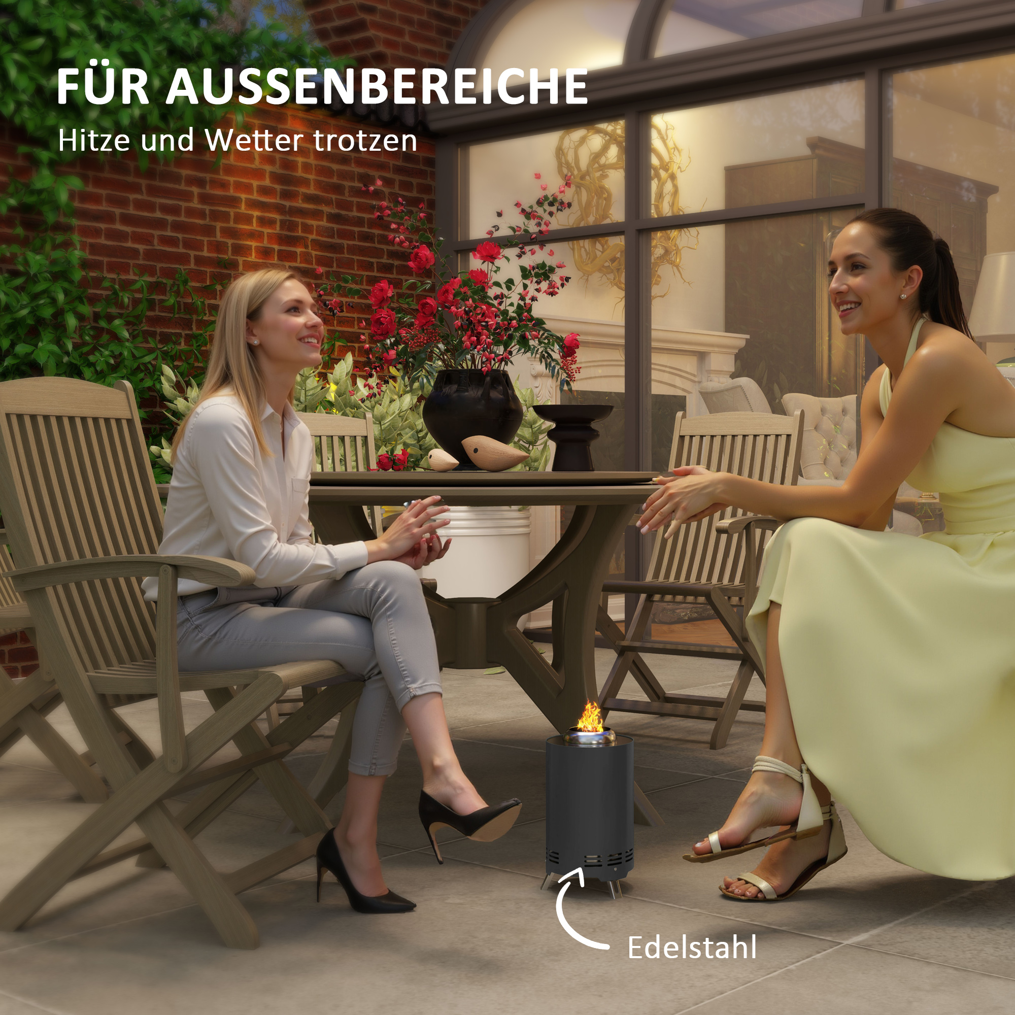 Entdecken Sie die elegante und nützliche Outsunny Feuerschale für den Garten im modernen Design, Diese aus pulverbeschichtetem Edelstahl gefertigte Feuerstelle bietet nicht nur Robustheit und hohe Hitzebeständigkeit, sondern auch ein ansprechendes Zylinderdesign, Dieses innovative, rauchfreie Sekundärverbrennungssystem der Feuerschale ermöglicht durch Sauerstoffzufuhr von unten und Kanäle zwischen den Wänden eine effiziente und starke Verbrennung, die den Brennstoff vollständig zu Asche verbrennt, Erleben Sie Wärme auf eine ganz neue Art!