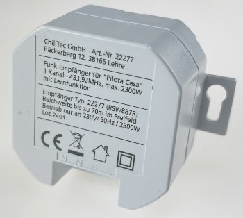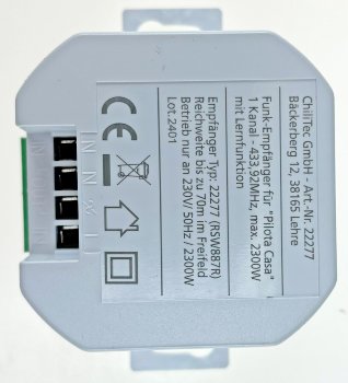 Produktinformationen "Funk-Empfänger für "Pilota Casa" 1-Kanal, max. 2300W, ERSETZT einen Schalter"