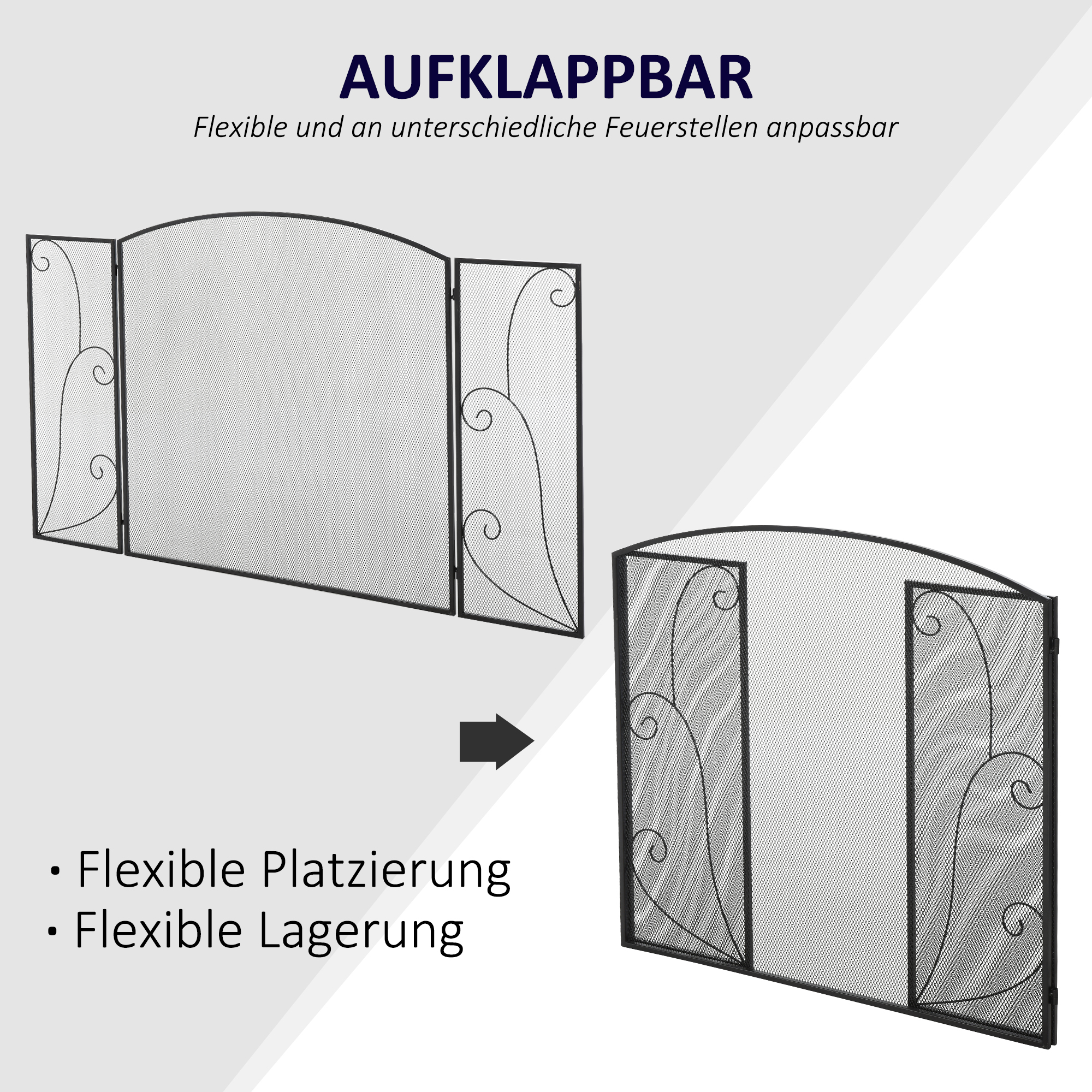 - Dreifach klappbares Gitter: Stellen Sie dieses Kamingitter ganz flexibel auf, dank der drei klappbaren Paneele, Wenn Sie es im Sommer nicht benötigen, kann das Gitter einfach gefaltet und platzsparend verstaut werden,