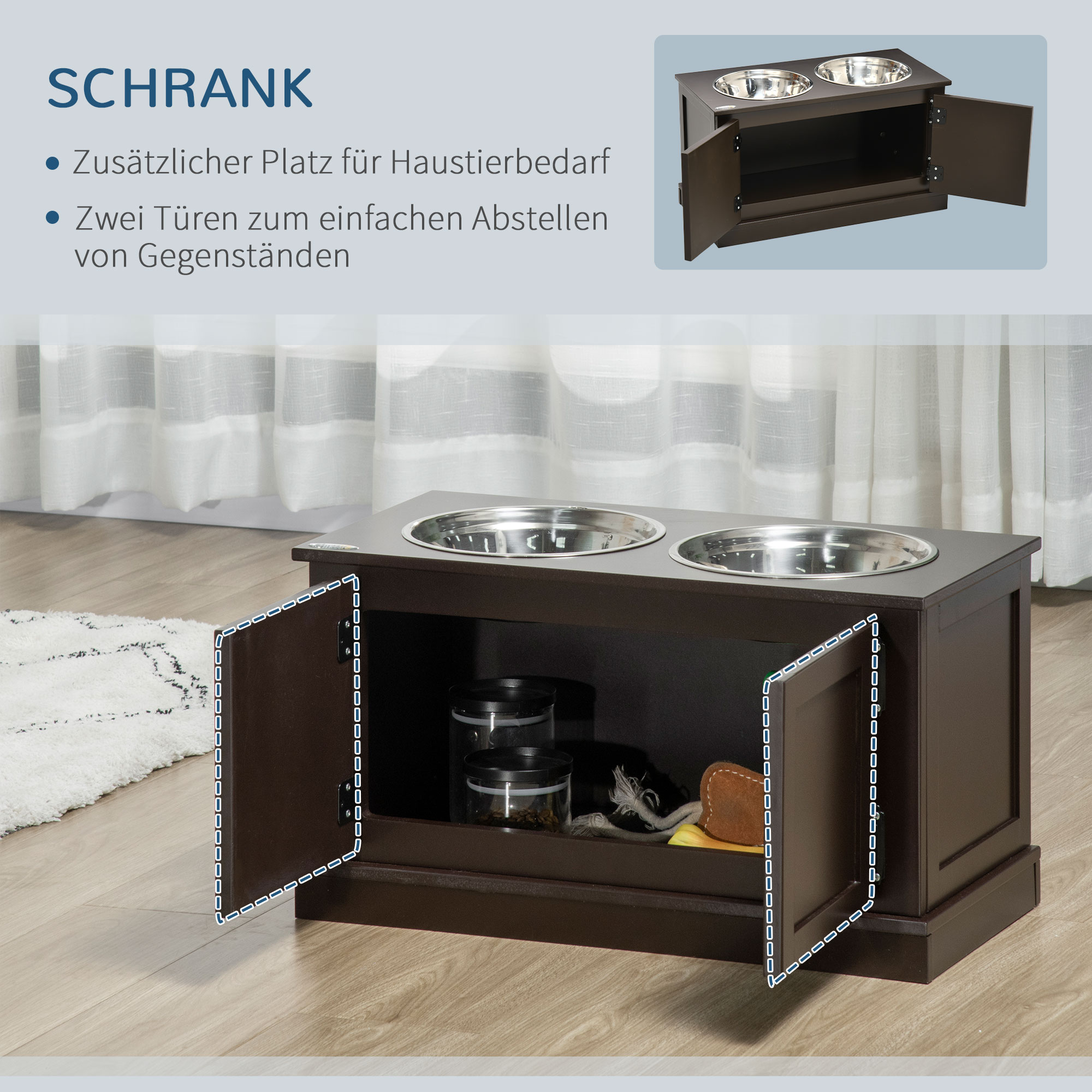 Futterstation erhöhte Futternäpfe, inklusive Stauraum, 60 cm x 30 cm x 34 cm, Braun + Silber