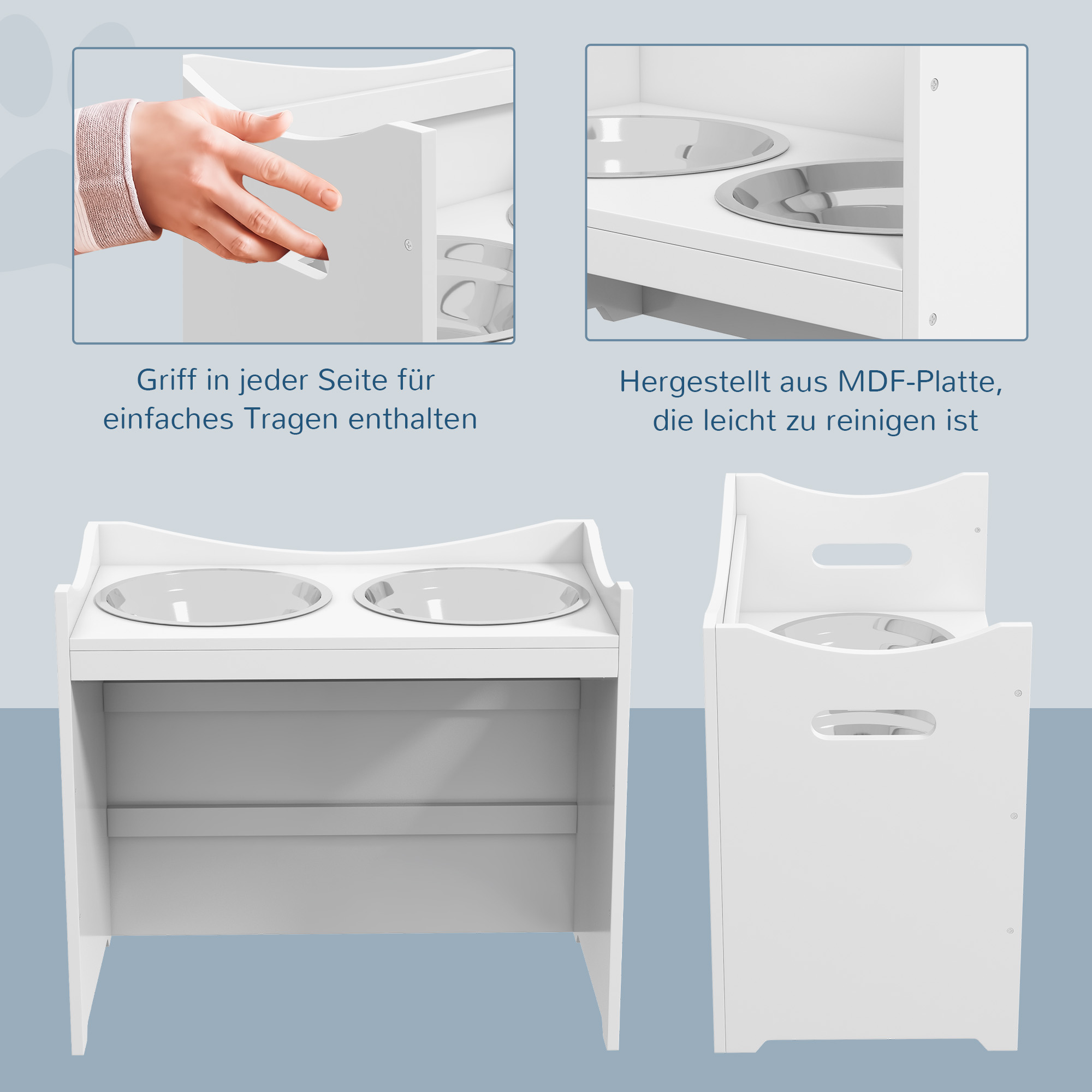 Futterstation für Hunde, 2 Edelstahlnäpfe, höhenverstellbar, 54x31,5x47cm, Weiß
