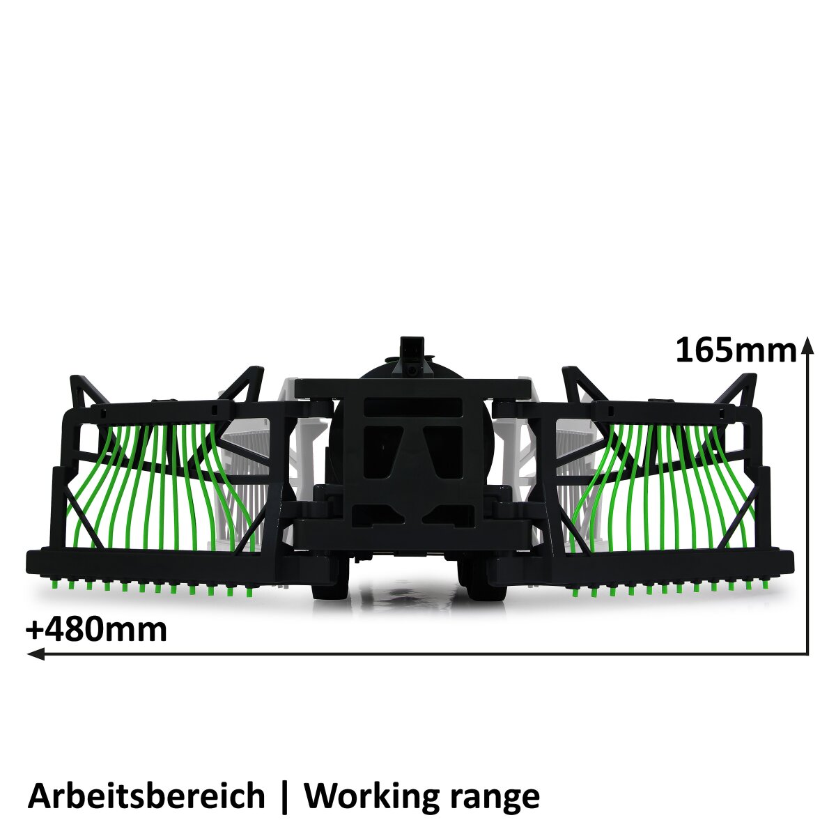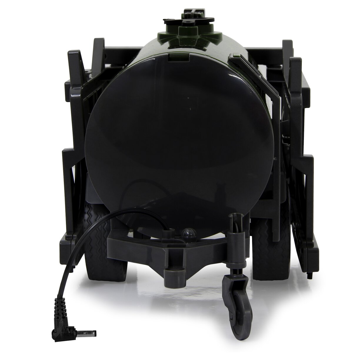 Die optimale Ergänzung zu den ferngesteuerten Traktoren von JAMARA kommt jetzt in Form eines Fasswagens mit Schlauchverteiler. Einfach ankoppeln und mit dem Zugfahrzeug verbinden, schon ist der offiziell lizensierte Garant Fasswagen einsatzbereit. Der große Tank kann mit ca. 450ml Flüssigkeit befüllt werden und nachdem die Schleppschlauchverteiler auf volle Arbeitsbreite ausgeklappt wurden kann die Arbeit beginnen. Mit einem Druck auf die Fernsteuerung des Traktors beginnt der Fasswagen die eingefüllte Flüssigkeit durch die Schläuche auf den Boden zu spritzen. So können sich die kleinen Landwirte wie richtig große Farmer fühlen.