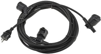 Pfiffige Lösung zum Anschluss mehrer Garteleuchten: Bei dieser Netzleitung sind 5m Kabel vom Schutzkontaktstecker bis zur ersten Steckdose vorhanden, je 2x 2,5m verlängern die Stromzufuhr zu 2 weiteren Steckdosen. Top-Lösung, um z.B. mehrere Leuchten um einen kleinen Teich zu positionieren.