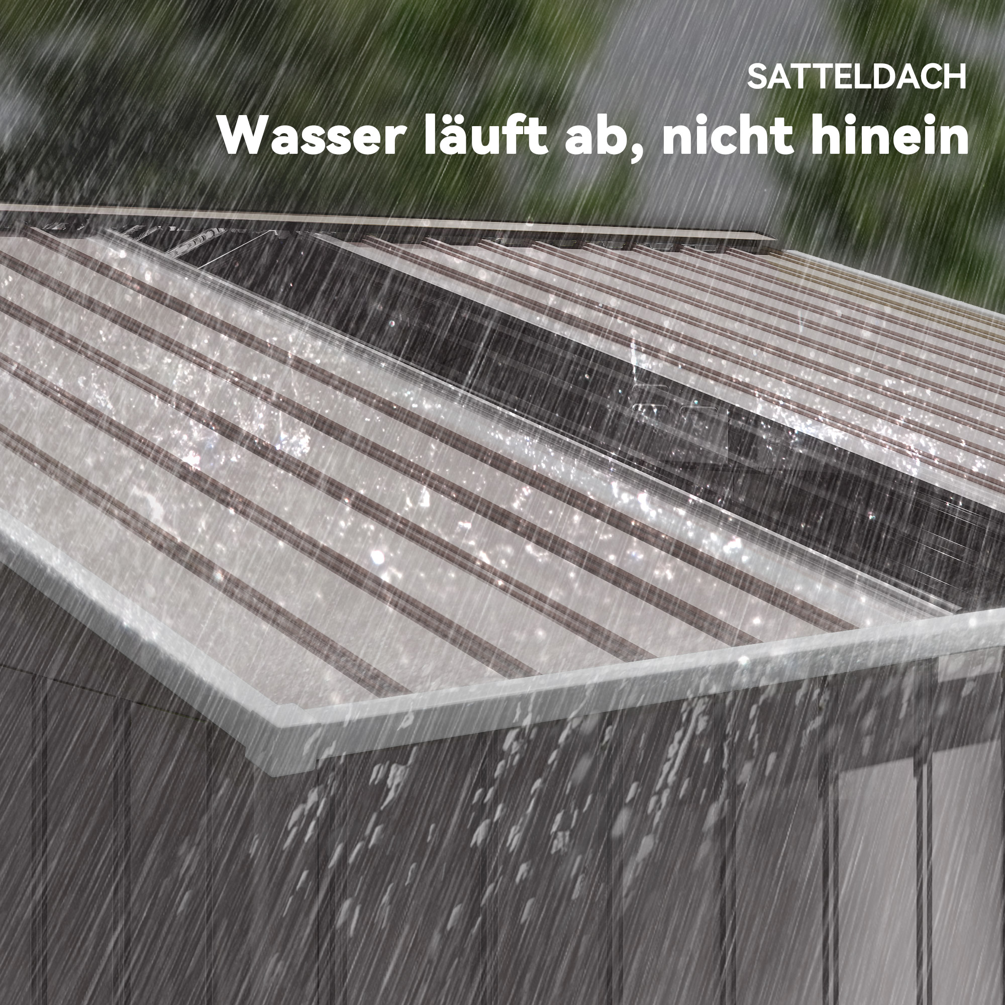 - Stahlkonstruktion: Dieses Gartenhaus aus Metall, das zum Schutz vor Witterungseinflüssen mit einer Beschichtung versehen ist, ist robust und widerstandsfähig und kann so lange in Ihrem Garten verwendet werden,