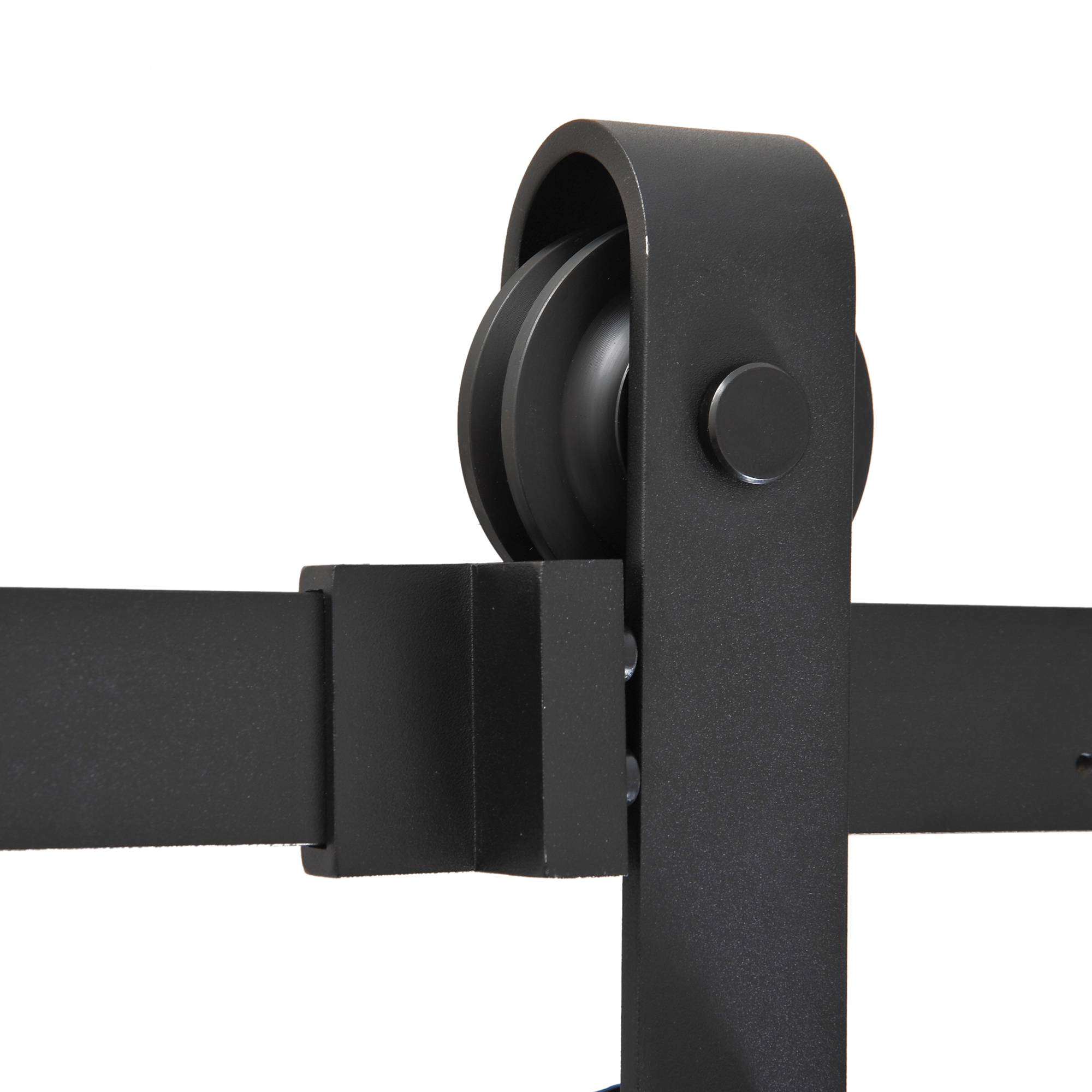 Verleihen Sie einer Tür in Ihrem Heim mit diesem großartigen rustikalen Schiebetürbeschlag-Kit von HOMCOM einen einzigartigen Charakter, Tauschen Sie herkömmliche Türen gegen eine stilvolle, praktische Tür aus und verwandeln Sie so den Look eines ganzen Raumes, Das Schiebetürsystem lässt sich von Schlafzimmern über Wohnzimmer und weiteren Räumen installieren, Gefertigt aus robustem Kohlenstoffstahl, hält es hohem Gewicht stand, Montage an Holz- oder Betonwänden möglich, Tür nicht inklusive,