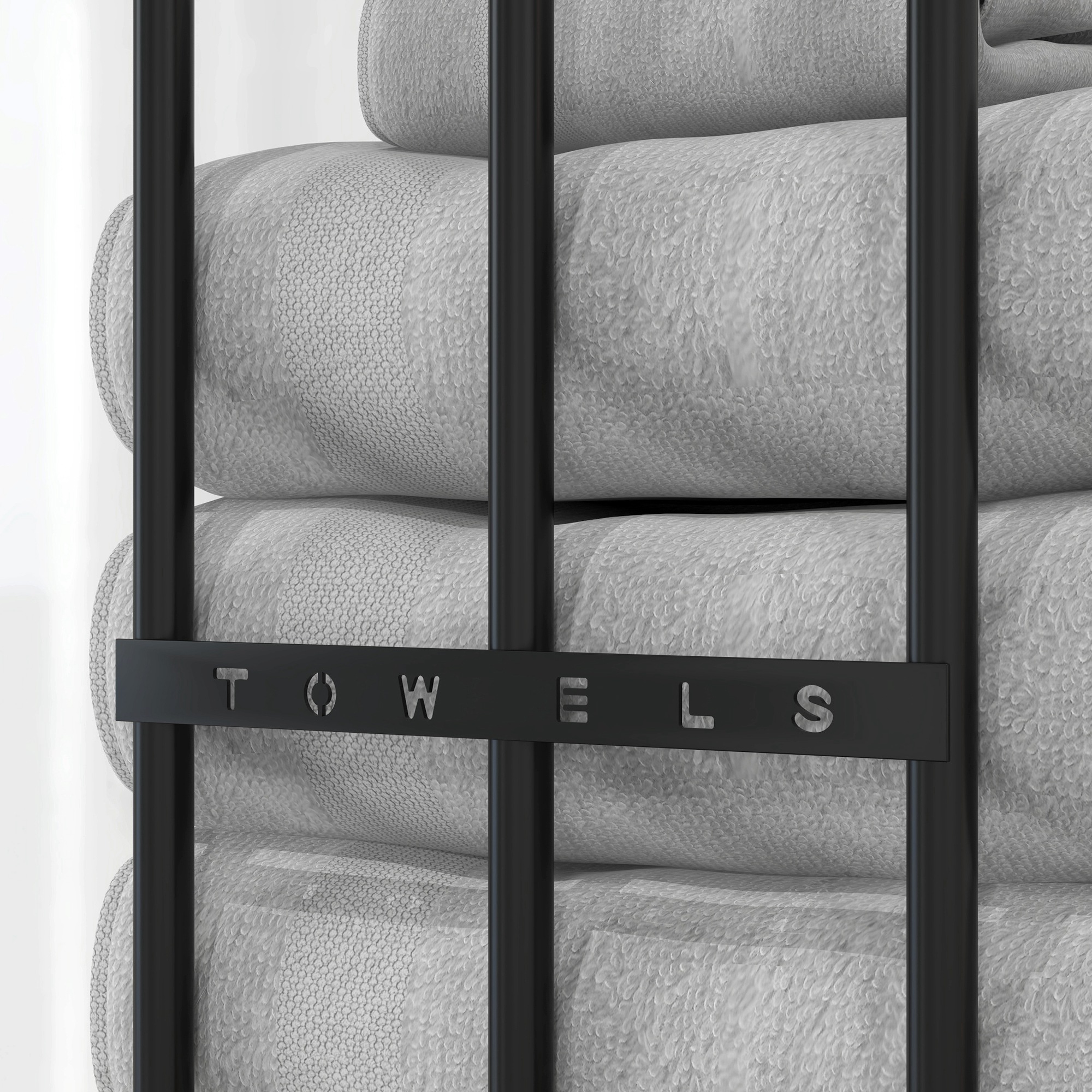 Verleihen Sie Ihrem Badezimmer mit dem wandmontierten Handtuchhalter von HOMCOM mehr Ordnung und Stil, Dieser schwarze Handtuchhalter zeichnet sich durch ein vertikales Design mit drei Stangen aus und bietet viel Platz für gerollte Badetücher, ohne Bodenfläche zu beanspruchen, Mit einem Wandabstand von 12 cm können problemlos bis zu sechs große Handtücher (150 x 100 cm) aufgehängt werden, Das minimalistische Design und der stilvolle "TOWELS"-Ausschnitt verleihen dem Gestell eine moderne Note,