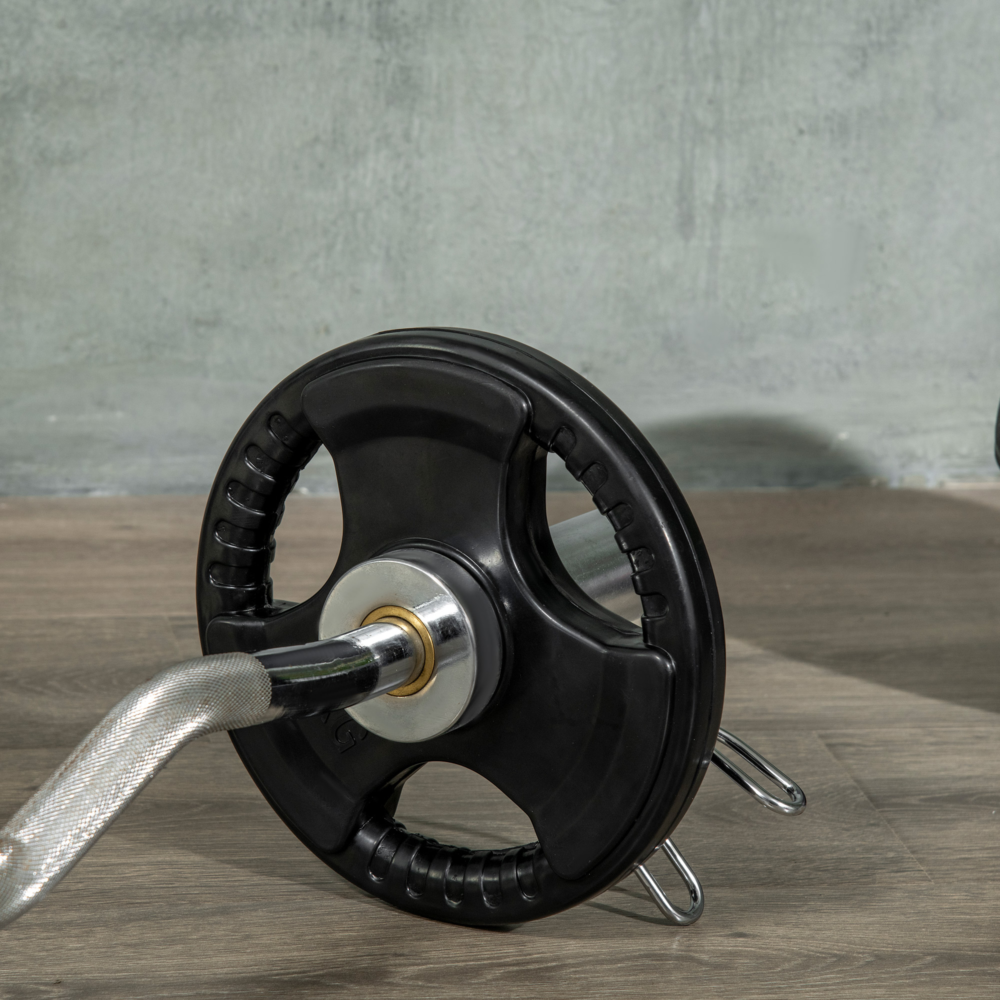 • Training ohne Stange: Jede Scheibe hat drei eingelassene Griffe, sodass Sie die Scheiben auch ohne Hantelstange verwenden können, um beispielsweise funktionales, freies Gewichtstraining durchzuführen,
