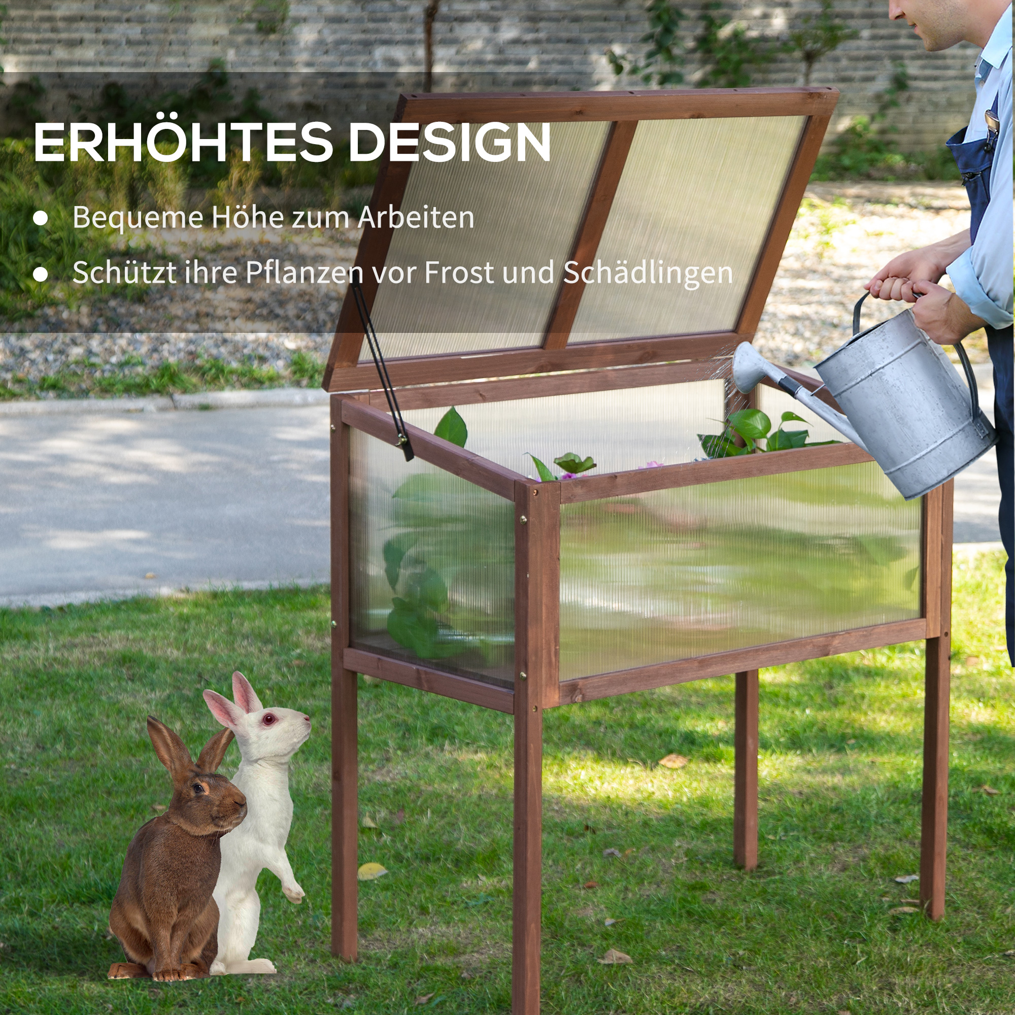 Dieses Holzgewächshaus von Outsunny mit einfachem und rustikalem Aussehen ist die perfekte Wahl für Sie, um sich um Ihre Pflanzen zu kümmern, Transparente Frühbeet ermöglichen maximale Lichtdurchlässigkeit bei gleichzeitiger Wärmespeicherung für die frühe Keimung von Samen oder zum Schutz von Pflanzen in der späten Saison, Dieses Tomatenhaus bietet eine Umgebung mit idealer Temperatur, Ihre Pflanzen können das Sonnenlicht genießen und gesund wachsen,