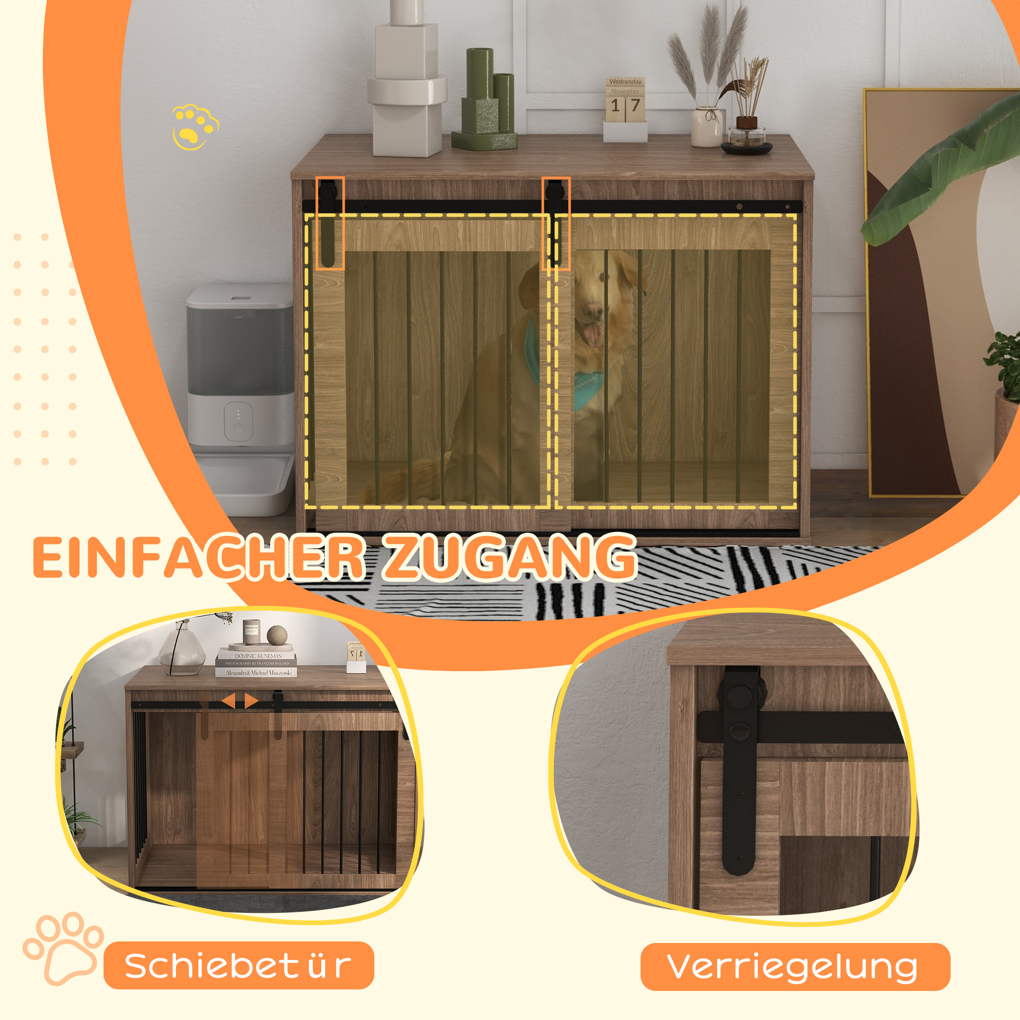 Hundebox Hundekäfig, Verriegelbar, Holzoptik, rustikales Design, 98 cm x 58 cm x 67 cm, Walnuss + Schwarz