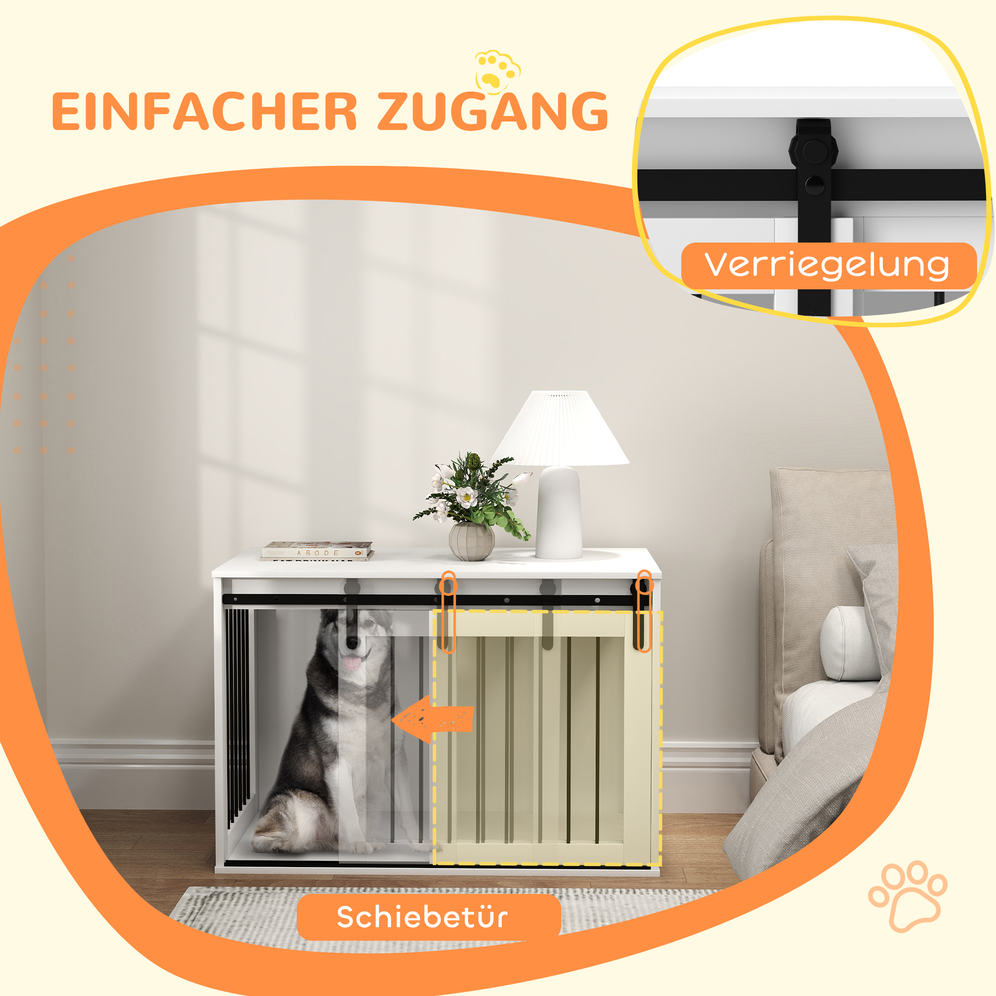• Robust und sicher: Gefertigt aus hochwertigem Holzwerkstoff und stabilem Stahl, ist diese Hundebox besonders langlebig, Die Schiebetür mit Riegel sorgt dafür, dass Ihr Hund sicher bleibt, wenn Sie nicht zu Hause sind,