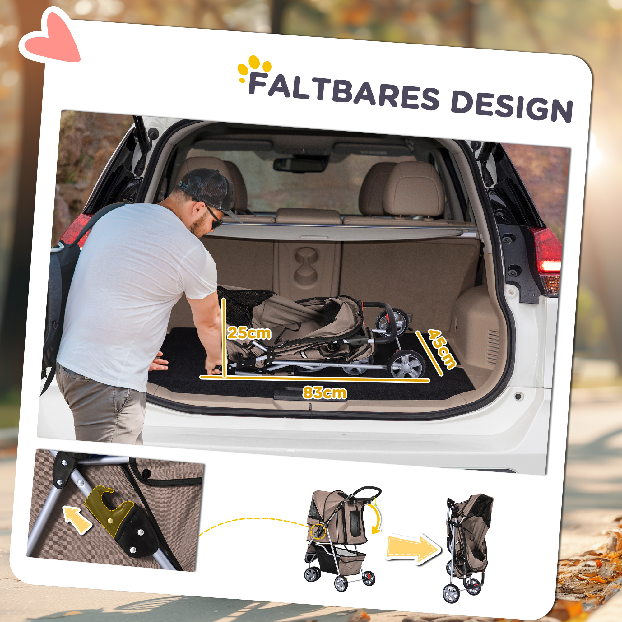 Hundebuggy Hundewagen bis 10 kg Klappbar Bodenkorb 2 Becherhalter verstellbares Vordach Kaffeebraun
