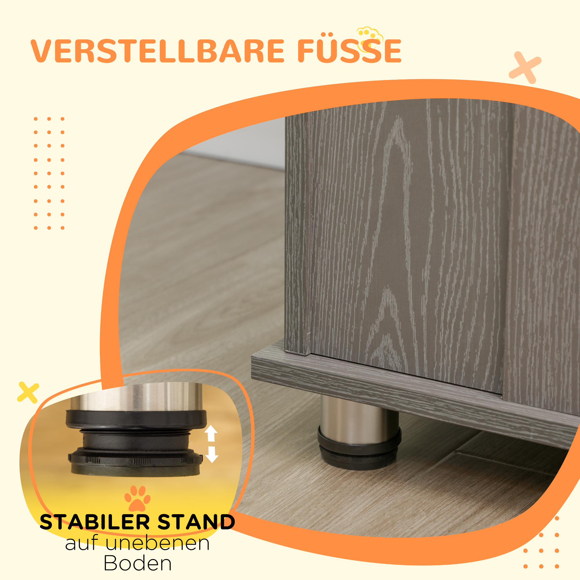 • Höhenverstellbare Füße: Fußpolster halten diese Hundehütte stabil, selbst auf unebenen Böden, Ein erhöhter Boden verhindert, dass Feuchtigkeit eindringt, sodass die Haustiere warm und gemütlich bleiben,