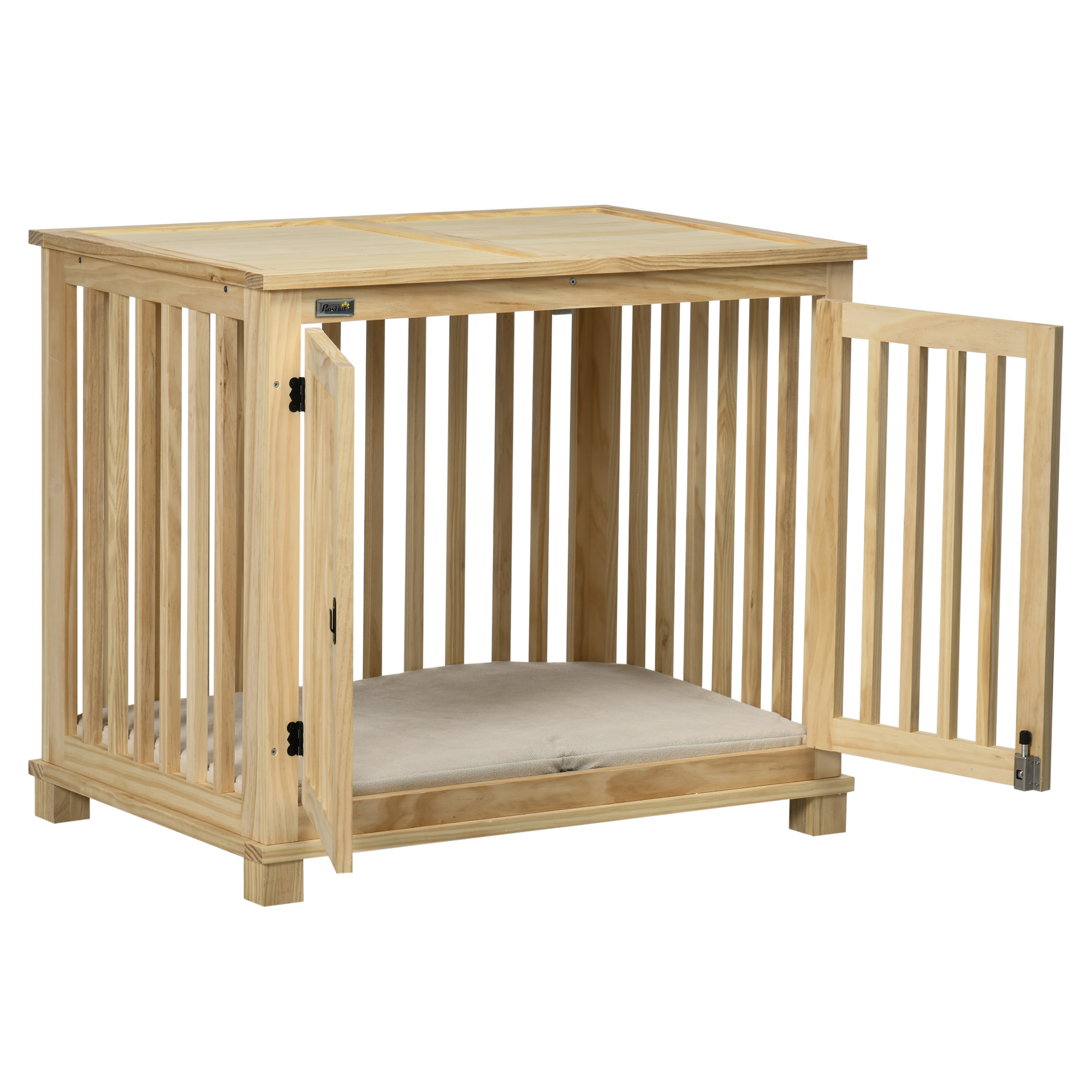 Hundekäfig inkl. Verrieglung und Polster, 82,5 cm x 57 cm x 72 cm, Naturholz + Cremeweiß