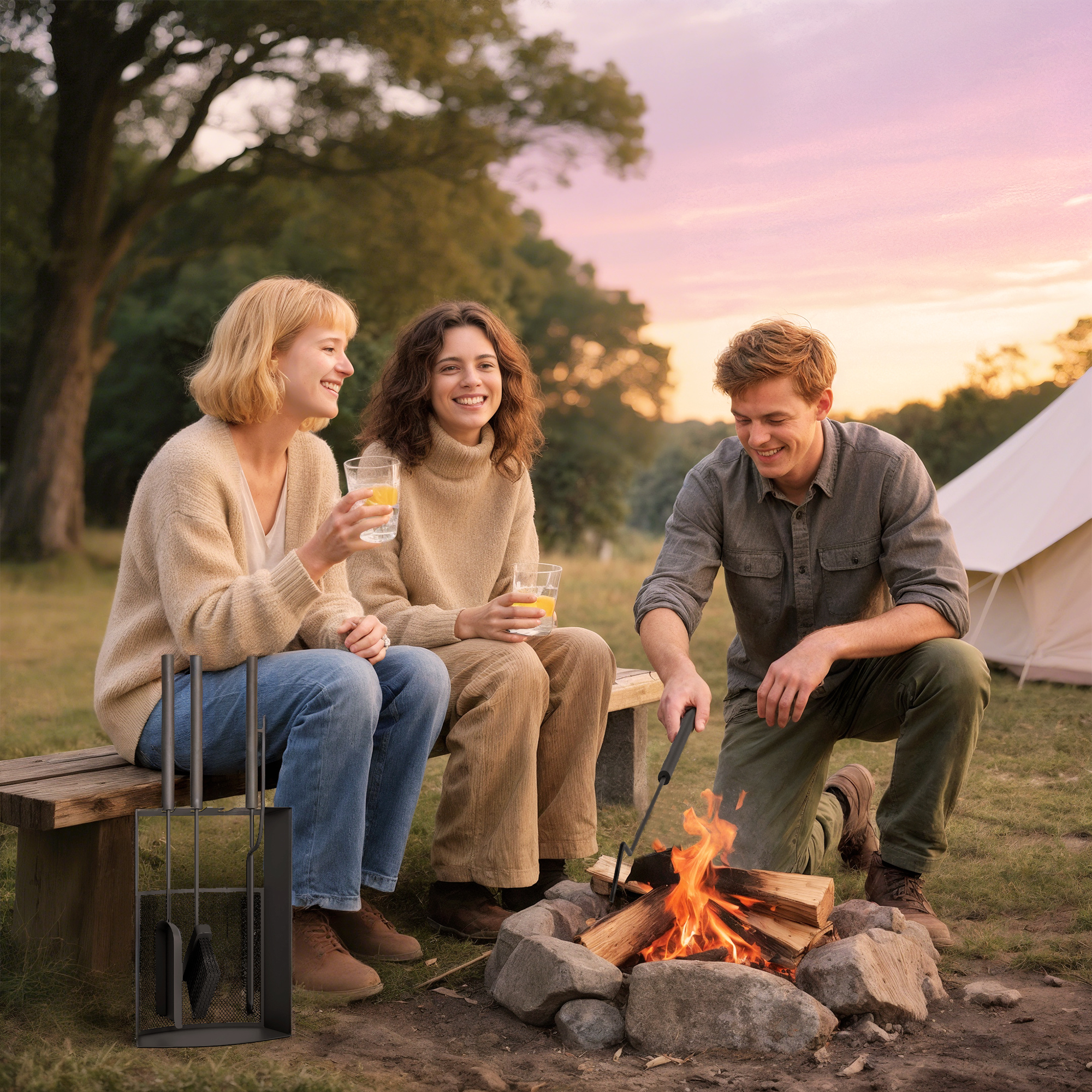 - Robuste Konstruktion: Gefertigt aus robustem Metall mit einer widerstandsfähigen Pulverbeschichtung, ist dieses Kaminbesteck Set sehr langlebig und hält auch häufiger Nutzung und Hitze stand.