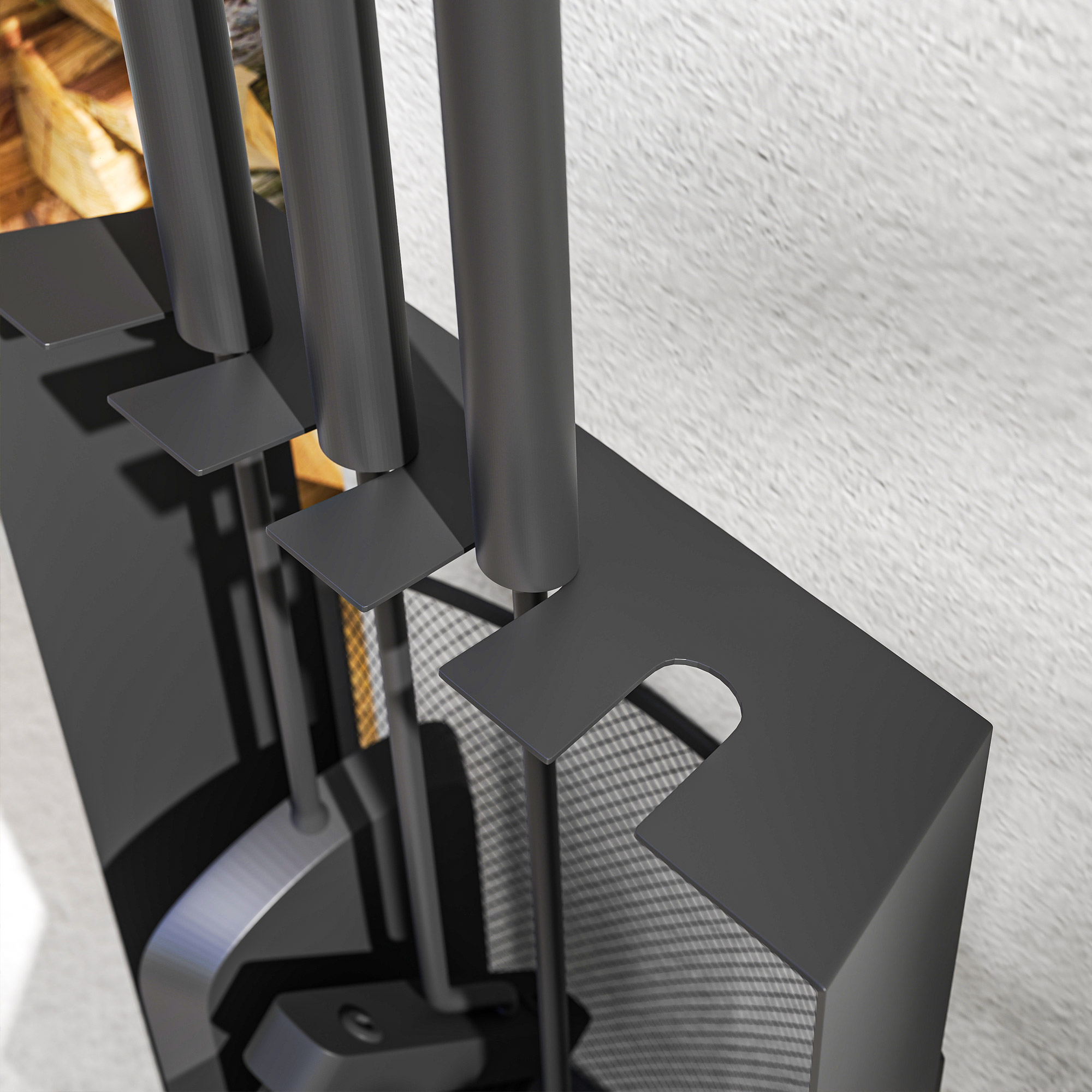 Beleben Sie Ihre Feuerstelle mit dem Outsunny Schürhaken Set, perfekt für drinnen und draußen. Das Kaminzubehör Set umfasst fünf Teile: Besen, Schaufel, Poker, Zange und Ständer, alle aus Metall mit schwarzer Pulverbeschichtung. Diese Kaminwerkzeuge bieten einfache Pflege und ein klassisches Design.