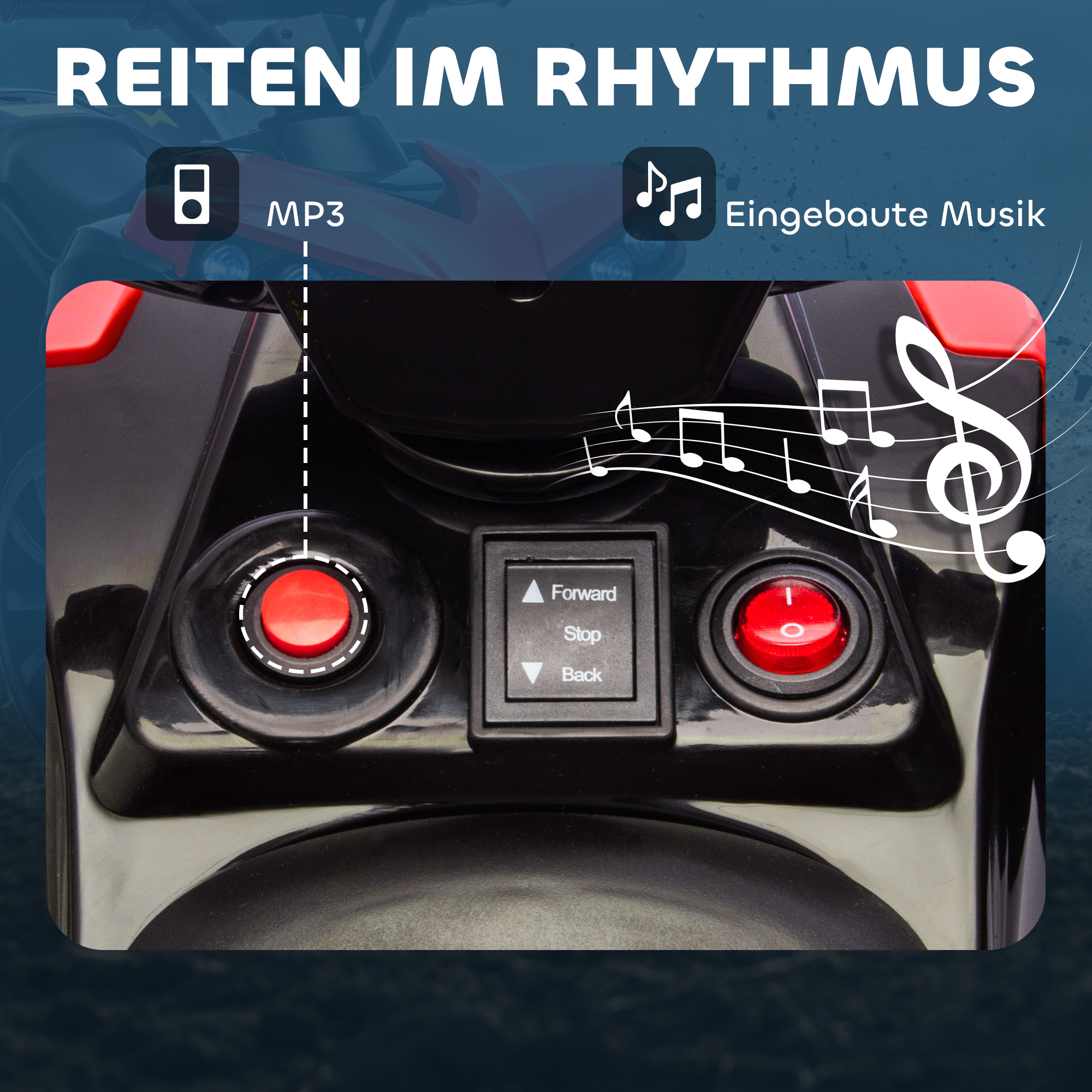 - Integrierte Musik und helle Scheinwerfer des Kinder Quads für ein eindrucksvolles Fahrerlebnis