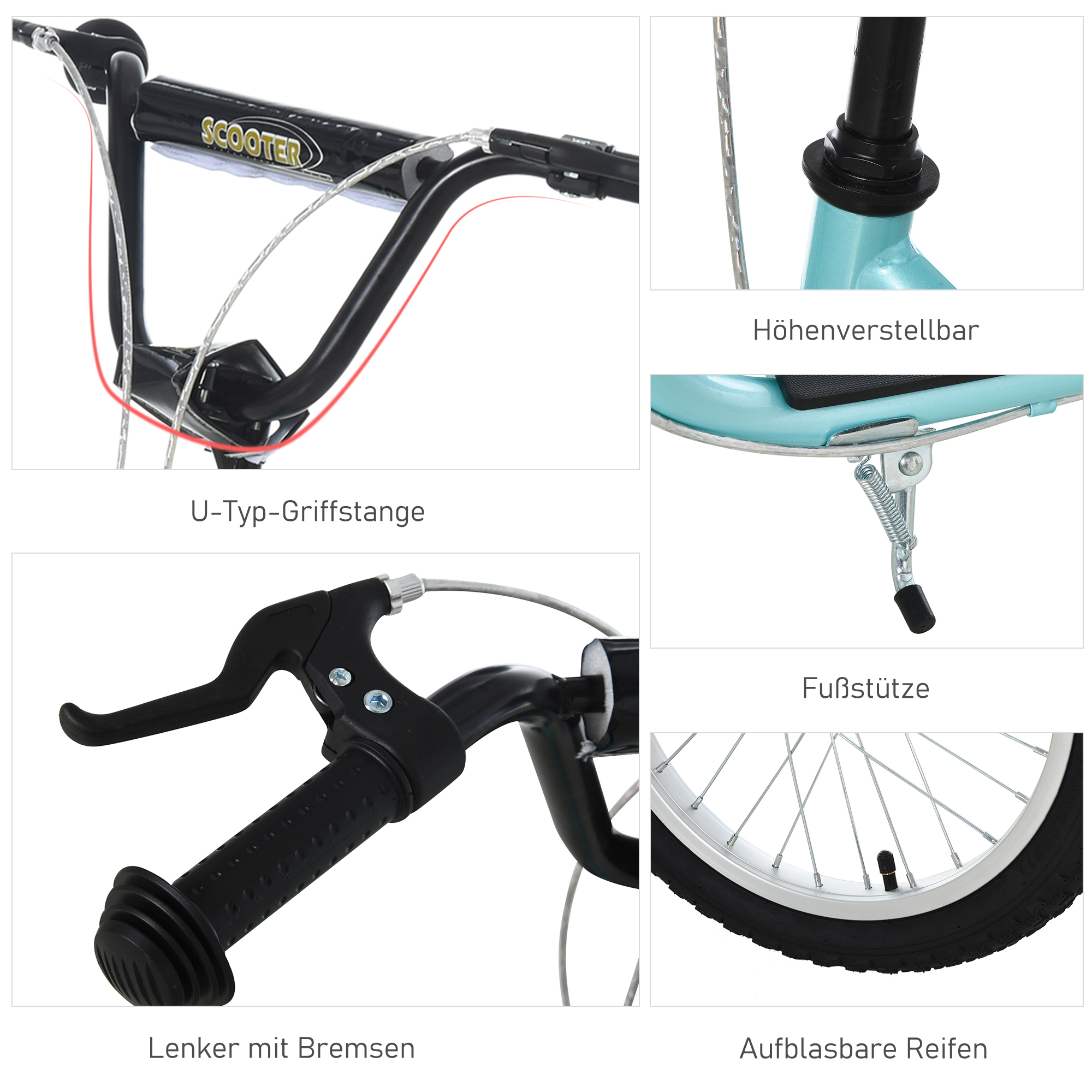 Produktinformationen "Kinderroller ab 5 jahre Scooter Tretroller Cityroller Kinder Roller Kickboard mit Luftreifen16/12 Zoll Blau 135 x 58 x 88-94 cm"