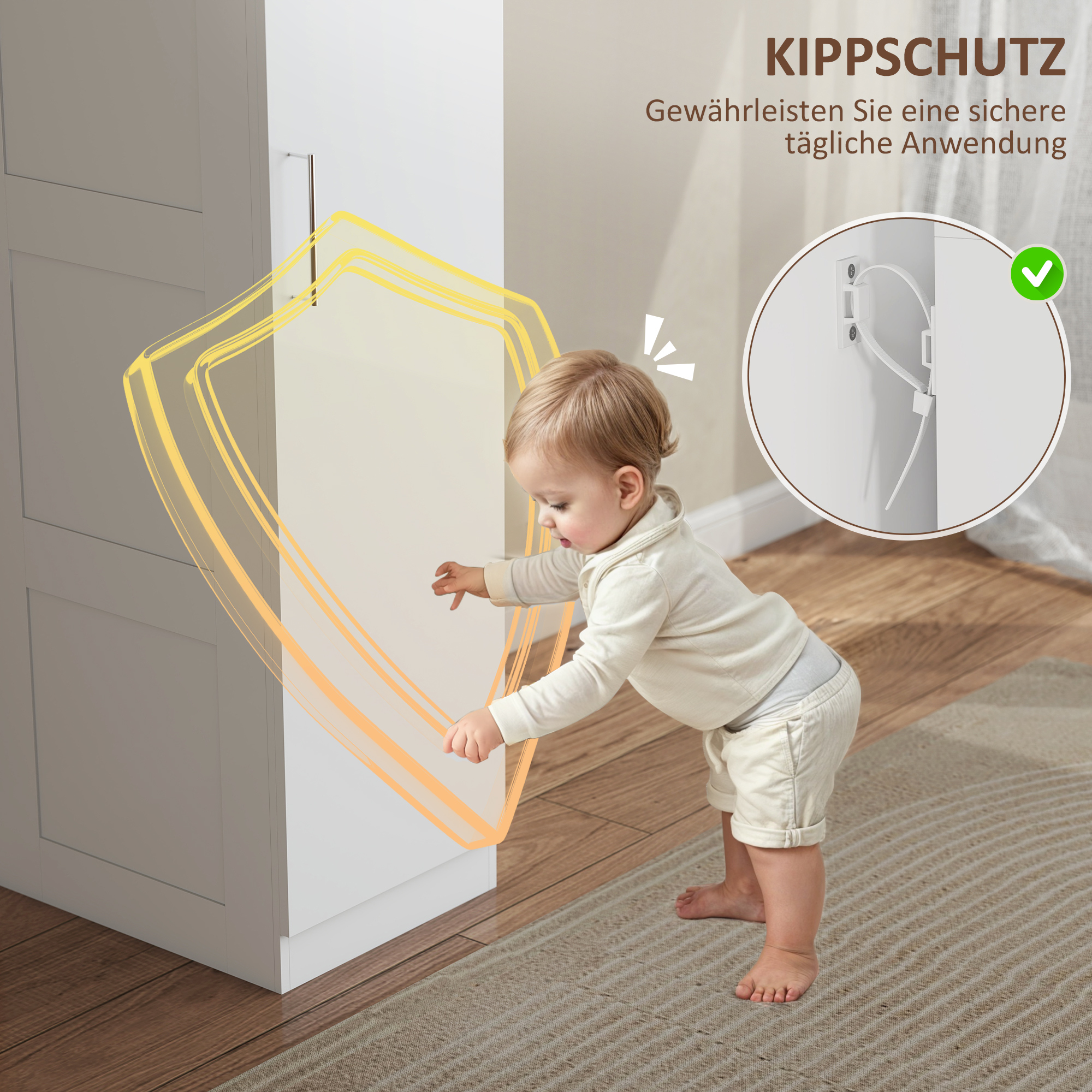 - Sicherheit, der Sie vertrauen können: Der Garderobenschrank wird mit einem Anti-Kipp-Set geliefert, das eine sichere Montage garantiert und zusätzliche Sicherheit bietet - ideal für Haushalte, in denen Stabilität und Sicherheit langfristig gewährleistet sein sollen,