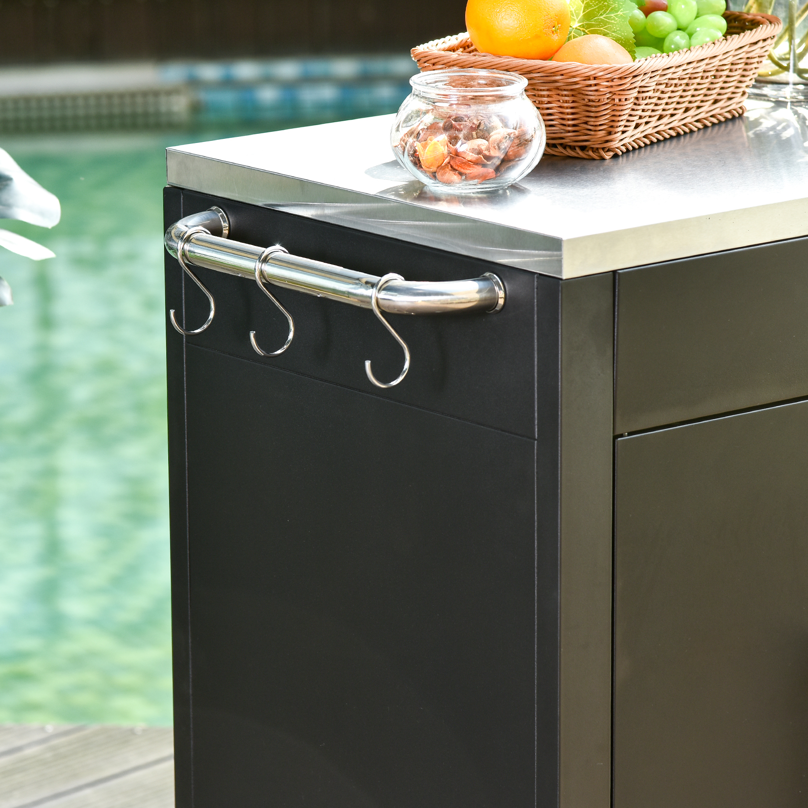- Metallrahmen mit Pulverbeschichtung: Dieser Küchenrollwagen für den Außenbereich besteht aus einem pulverbeschichteten Metallrahmen, wodurch er robust genug ist, um den Elementen im Außenbereich standzuhalten