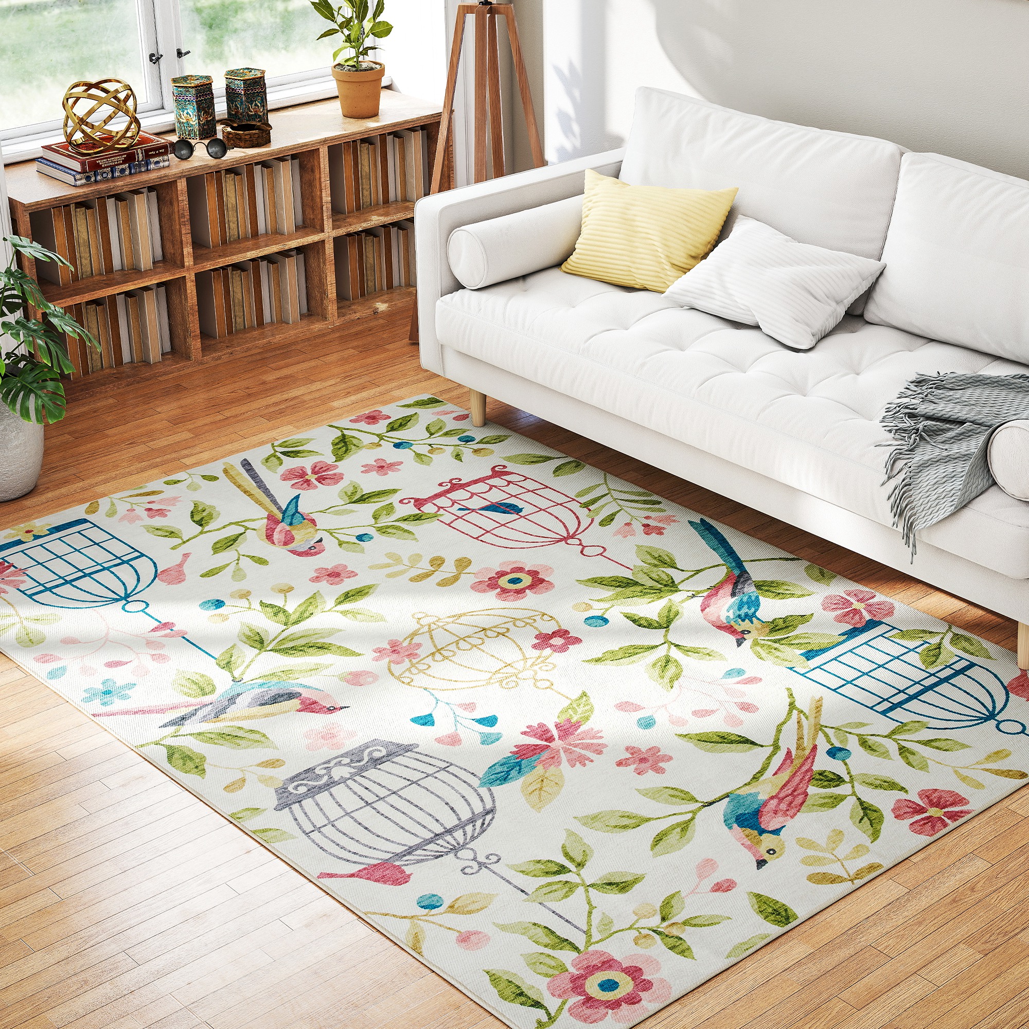 • Fröhliches Landhausdesign: Mit lebhaften Vögeln, Blumen und Vogelkäfigen auf einem zarten Cremehintergrund verleiht dieser Teppich Ihrem Zuhause mit seinem vielseitigen und einladenden Stil naturinspirierten Charme, Ideal für Wohn- und Schlafzimmer,