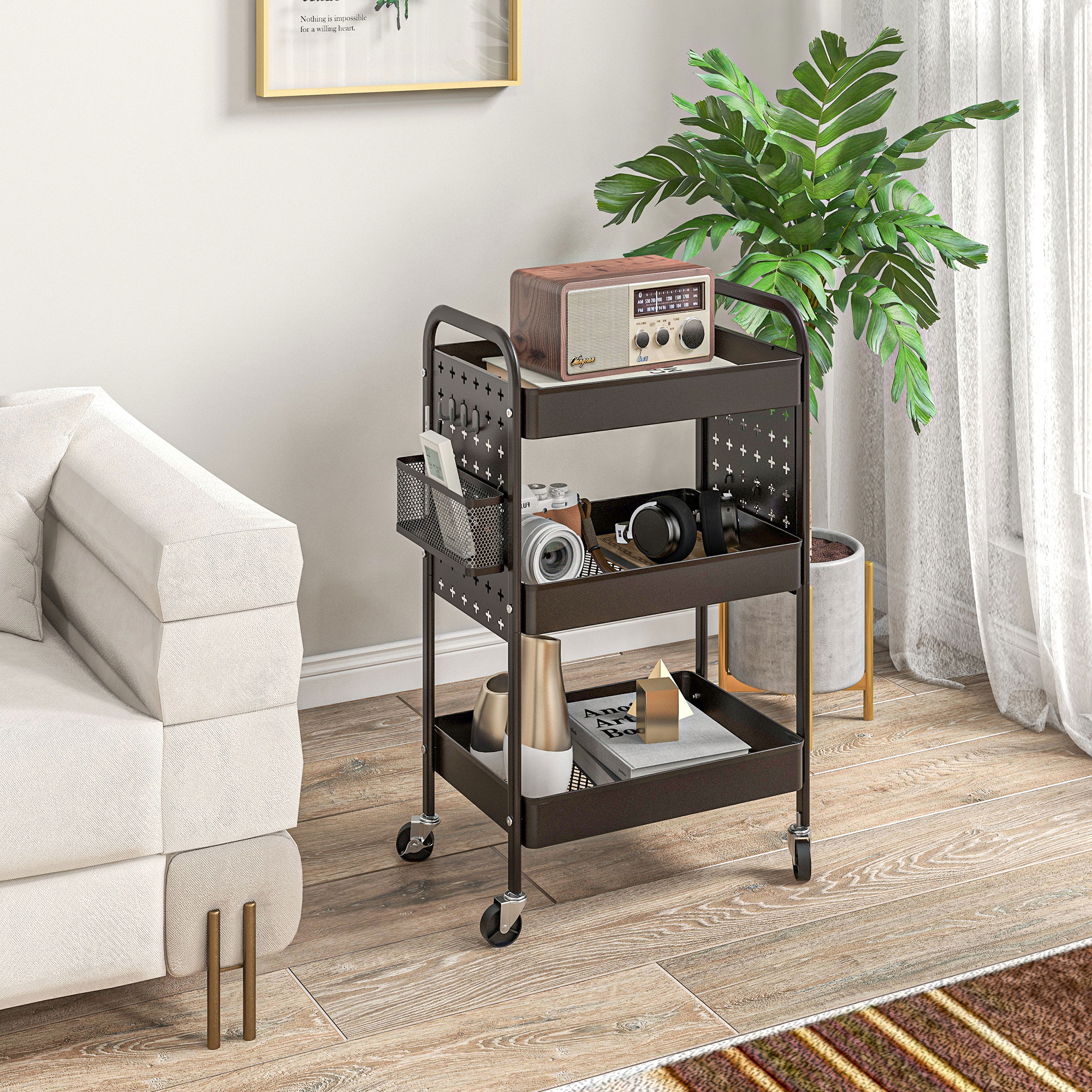 Dieser kompakte Rollwagen von HOMCOM ist ideal für kleine Räume, in denen mehr Stauraum benötigt wird, Die Gitterkörbe und die seitlichen Haken bieten viel Platz für verschiedene für Lebensmittel oder Zubehör, Ausgestattet mit leicht zu ziehenden Griffen für einen einfachen Transport, Vier leichtgängige Räder mit zwei Bremsen ermöglichen es Ihnen, den Nischenwagen zu bewegen, wo immer Sie ihn brauchen, Er kann als Badezimmerwagen, Servicewagen, Küchenwagen und Wäschewagen verwendet werden,