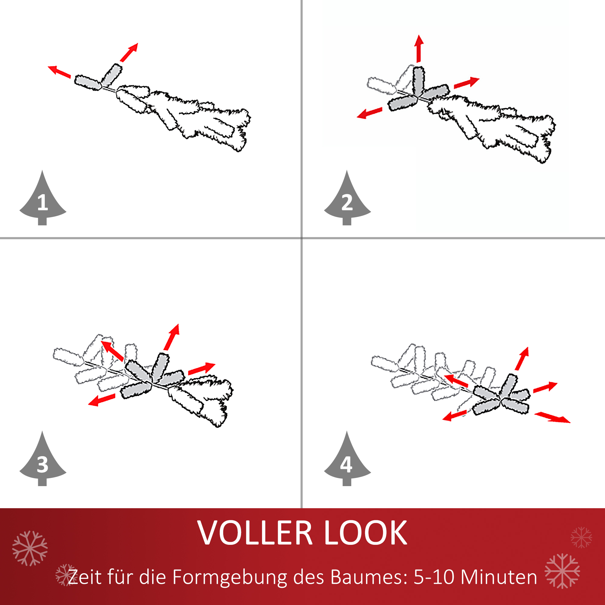 - Gesamtmaße zum Weihnachtsbaum: Ø32 x 60H cm. Für ein vollständig realistisches Aussehen sollten alle Zweigspitzen einzeln ausgebreitet werden, was etwa 5-10 Minuten in Anspruch nimmt.