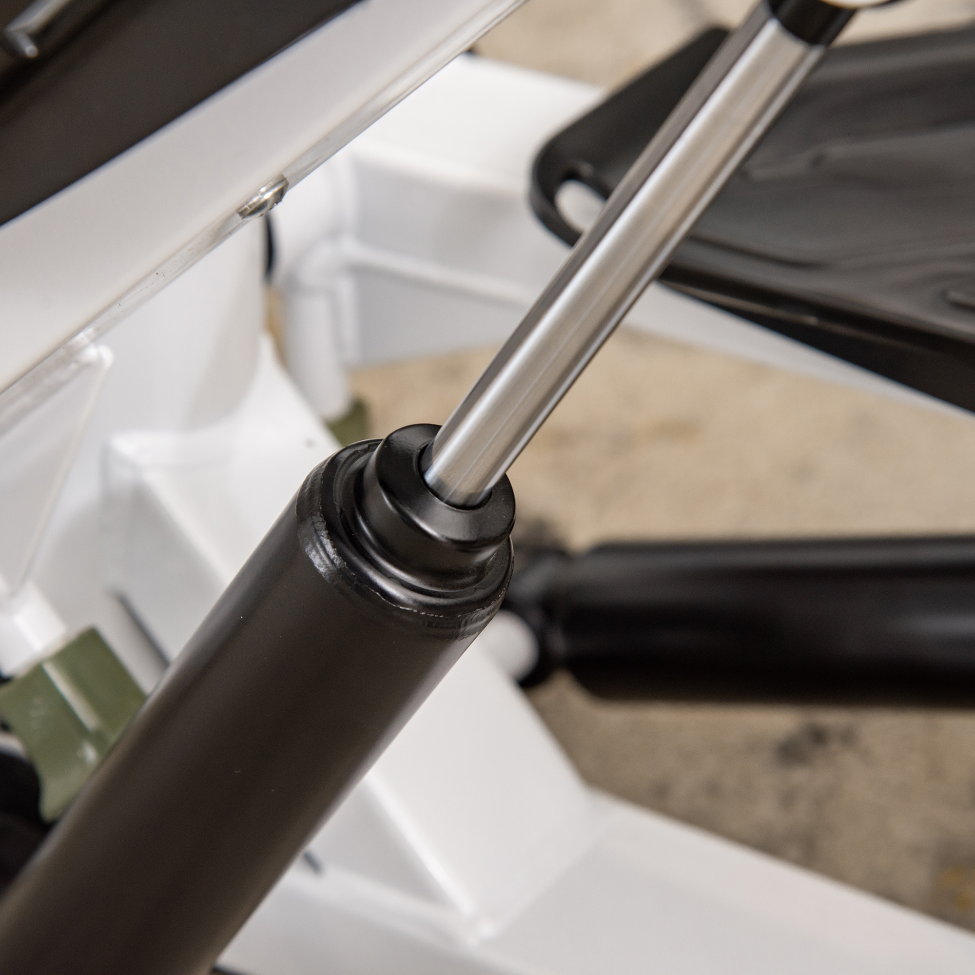- - Die beiden Hydraulikzylinder sorgen für einen gleichmäßigen Tritt und halten das Tempo hoch